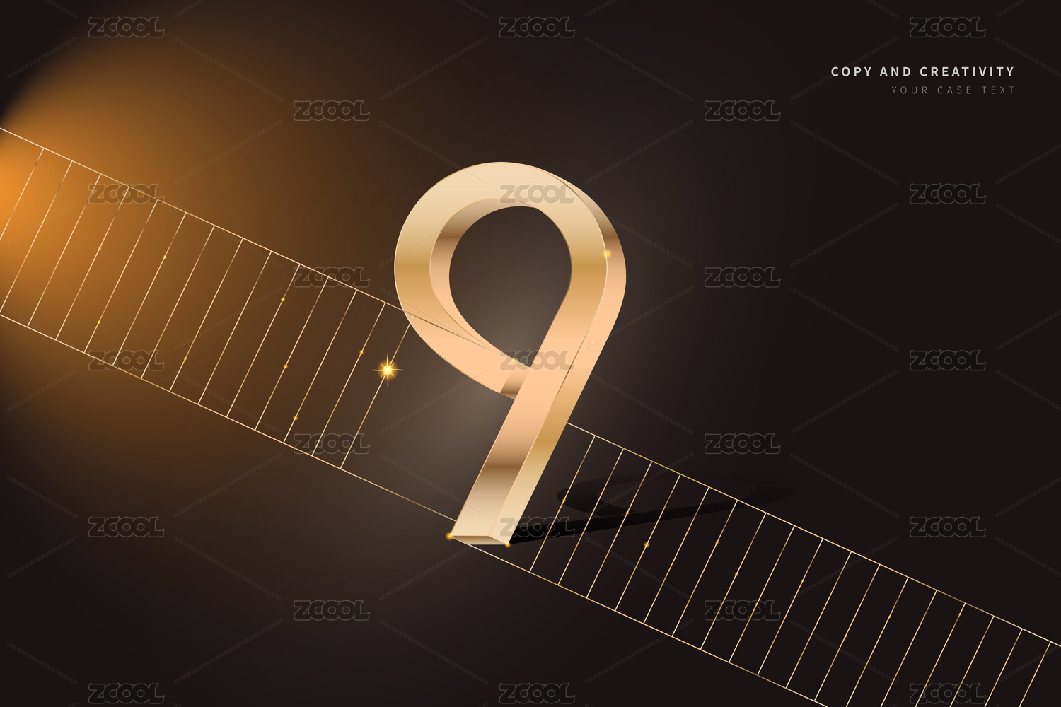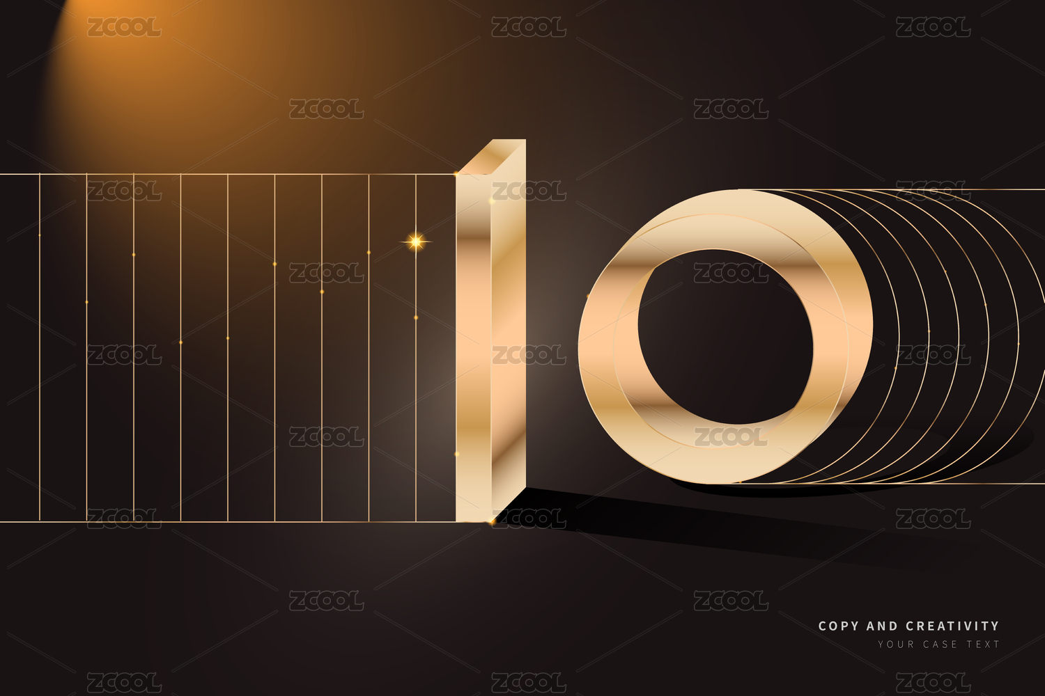 黑色背景金色三维数字线条抽象创意设计海报