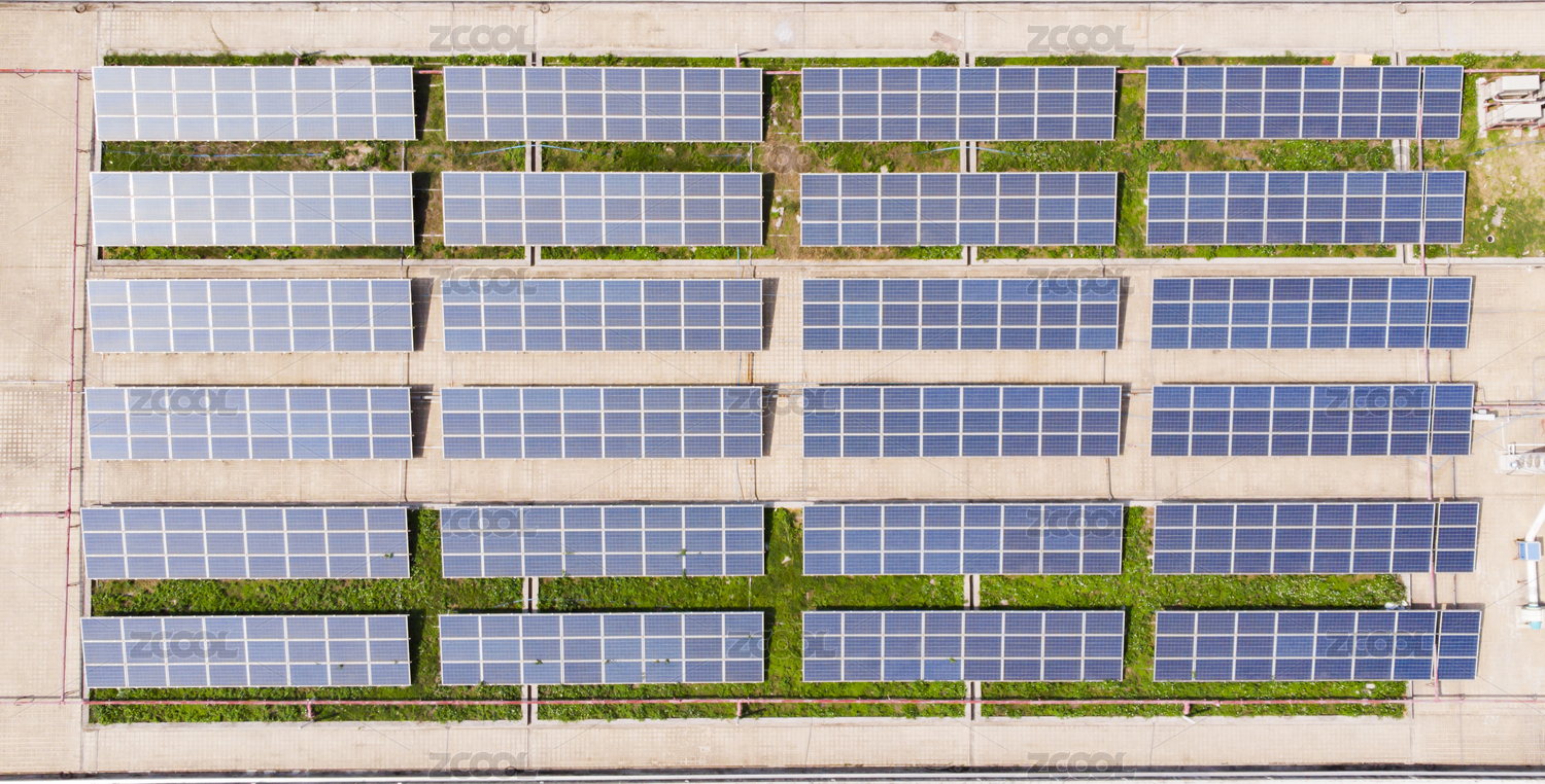 厂房顶上整齐排列的太阳能电池板