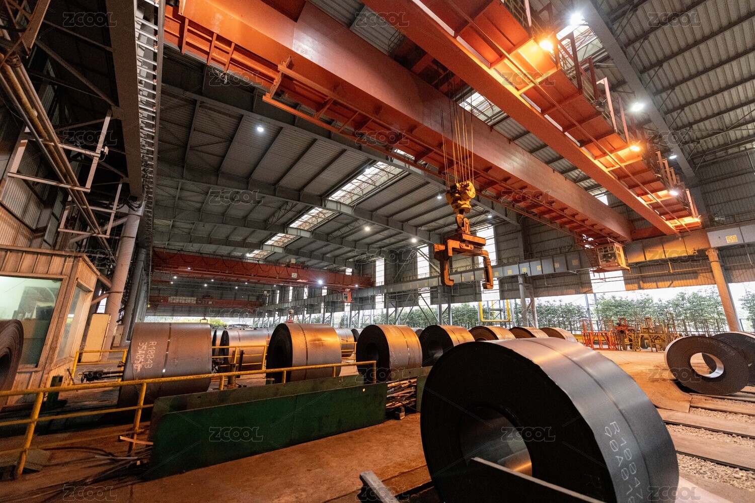 厂房内部正在吊装的不锈钢卷板