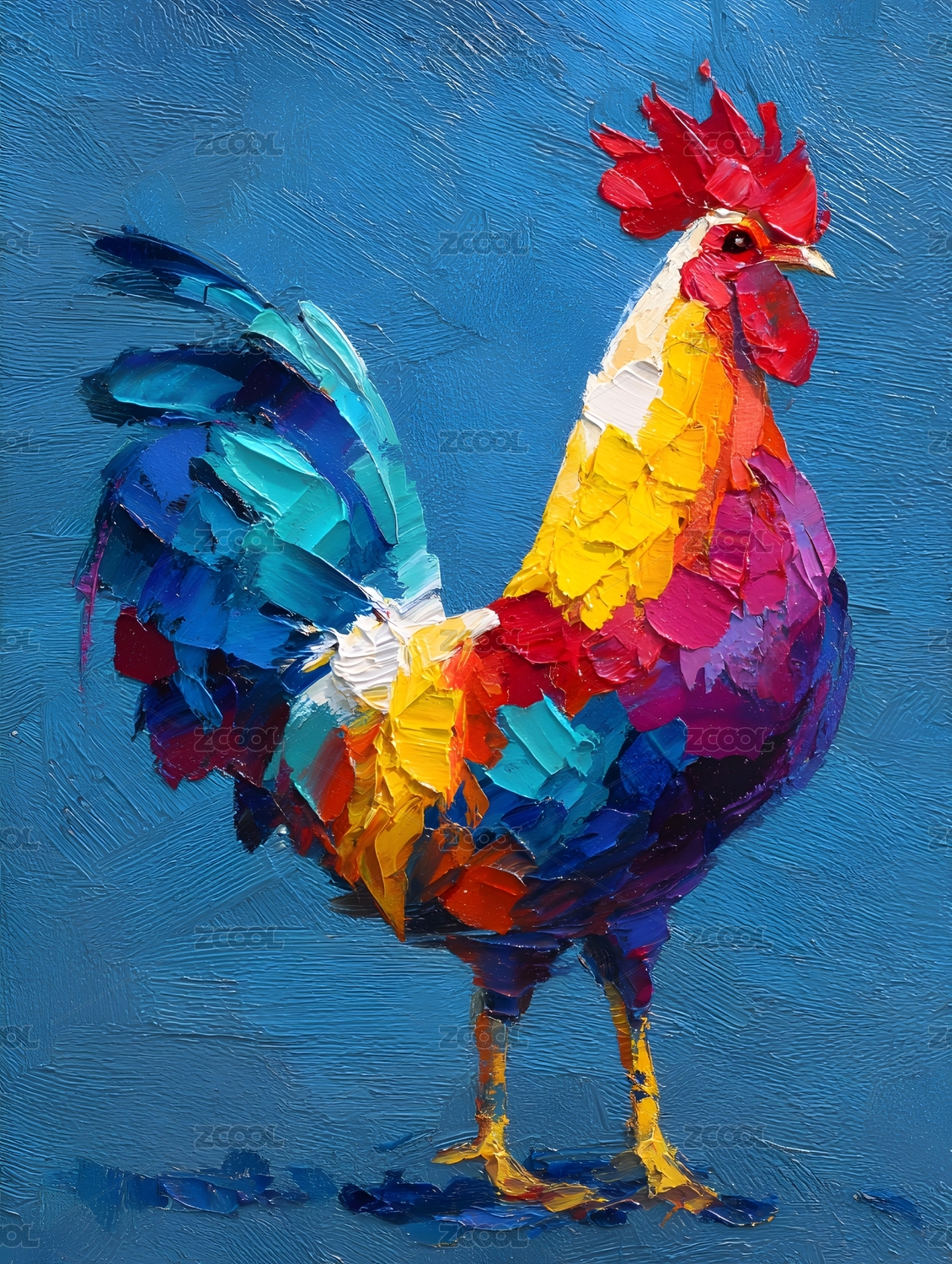 一只公鸡的厚涂油画
