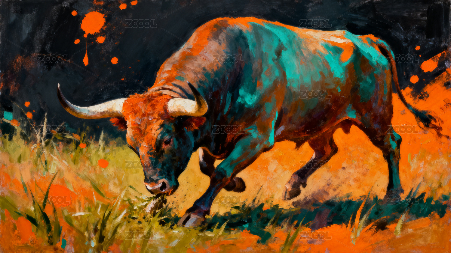 健壮的公牛抽象艺术厚涂油漆画
