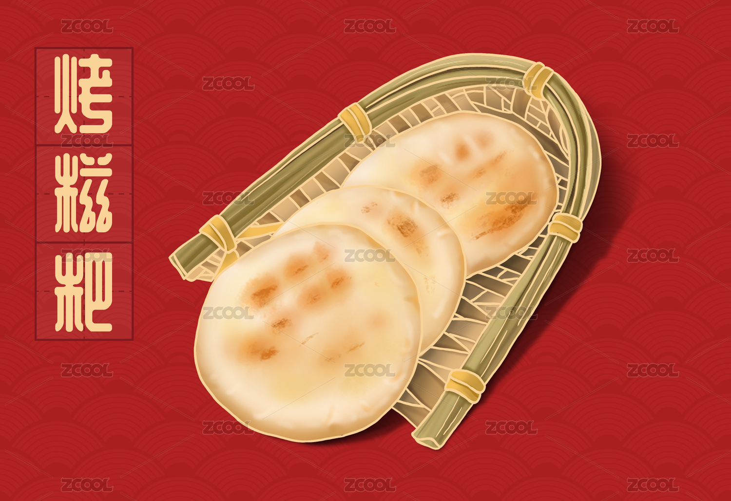 烤糍粑插画