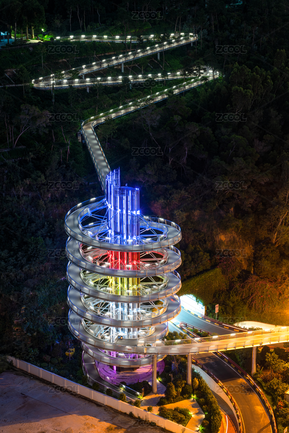 大连海边公园里彩虹色的散步道