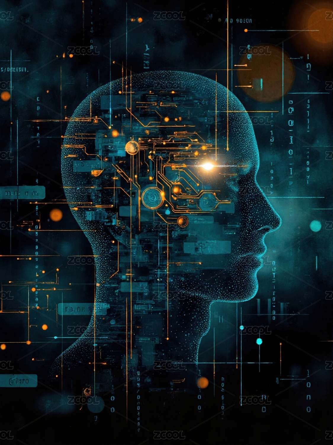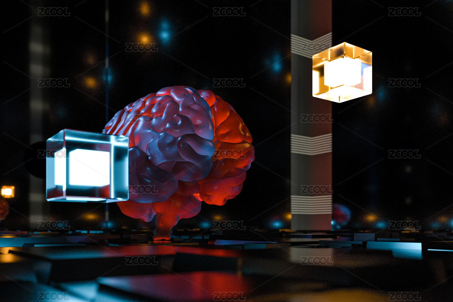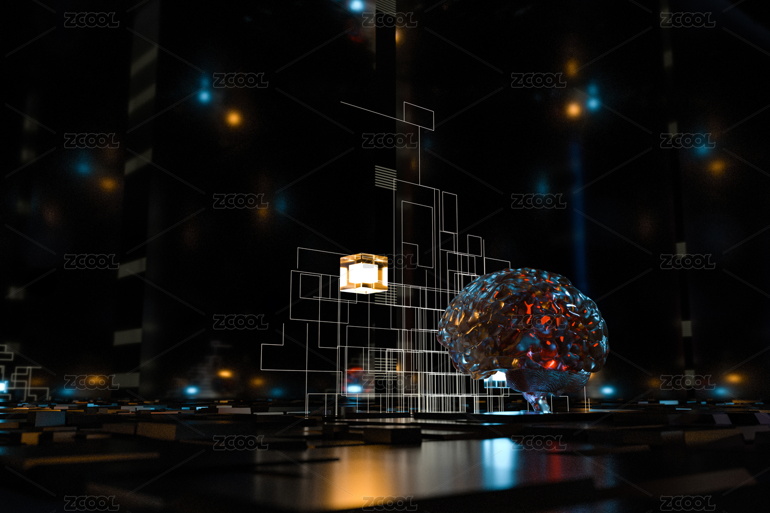 人类大脑与科幻素材背景 三维渲染