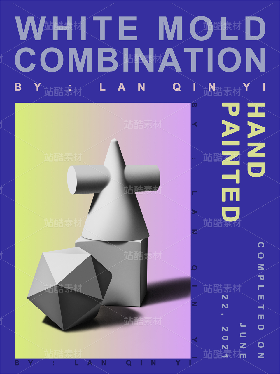 黑白石膏几何体素描背景