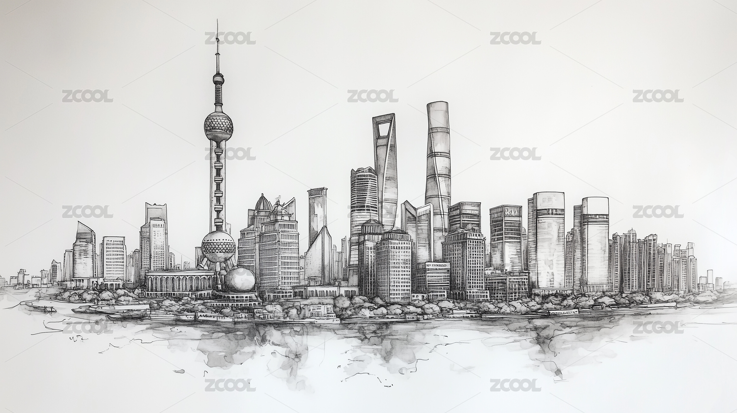 中国上海陆家嘴素描插画