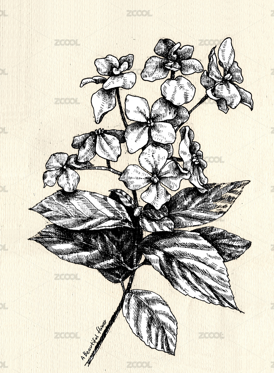 素描绣球花