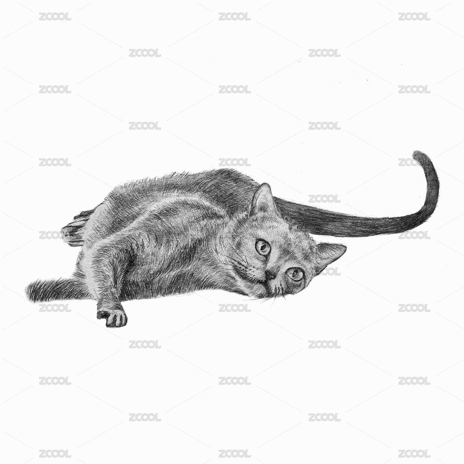 素描黑白一只躺着的猫