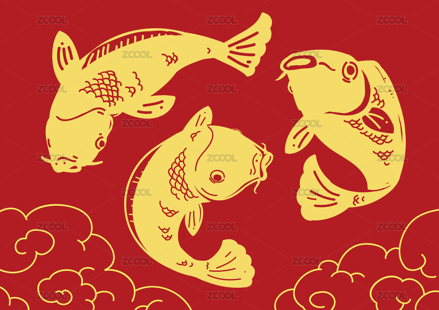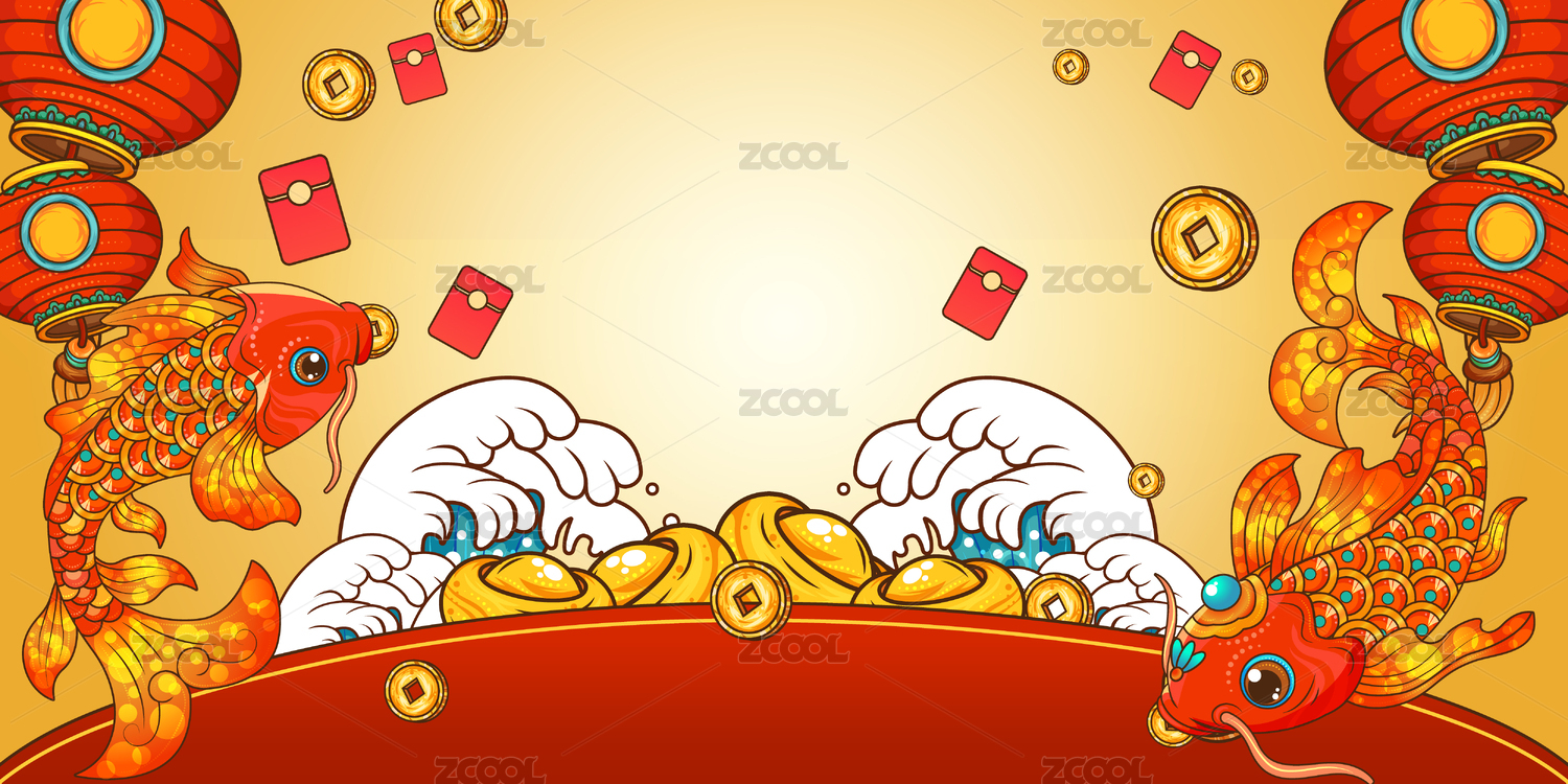 金色鲤鱼新年送福元宝红包喜庆中国年背景