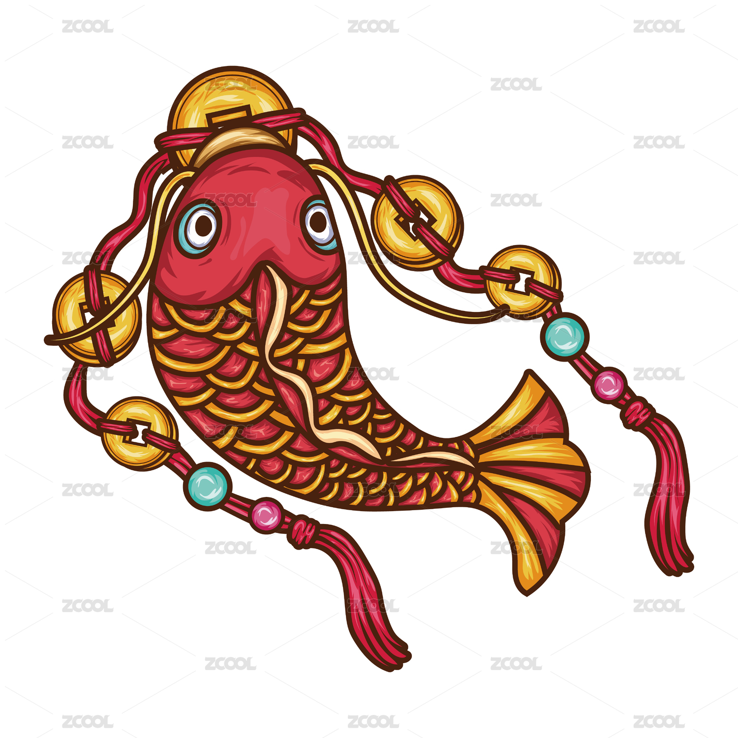 新春节日3D金色锦鲤鱼与红包元宝组合