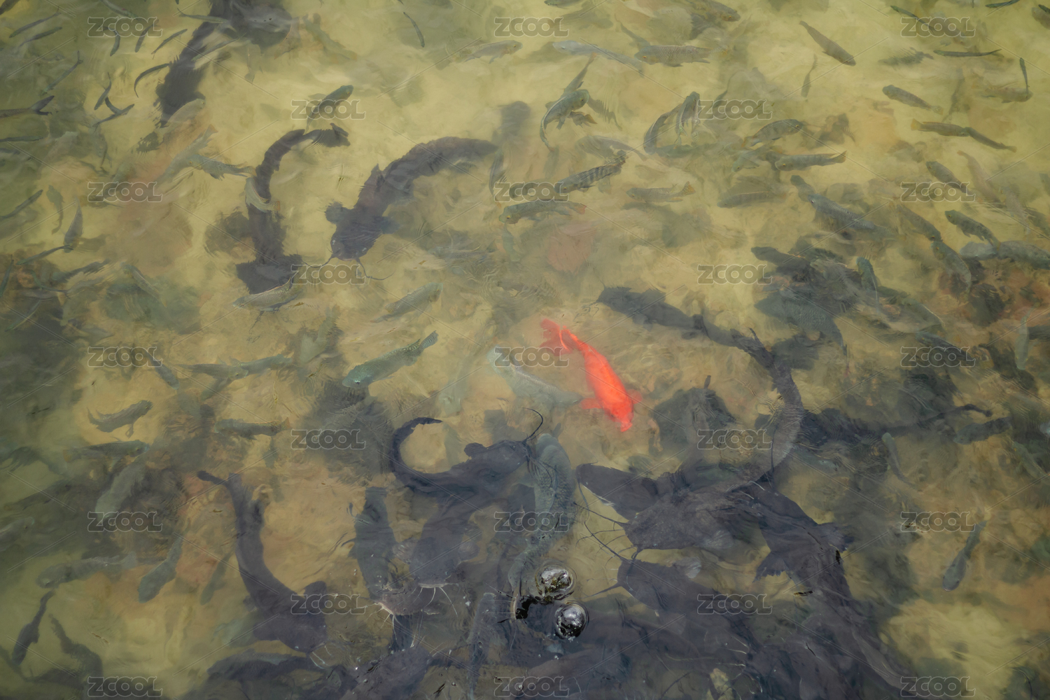 临安大明山景区山顶大明湖里的金色鲤鱼群