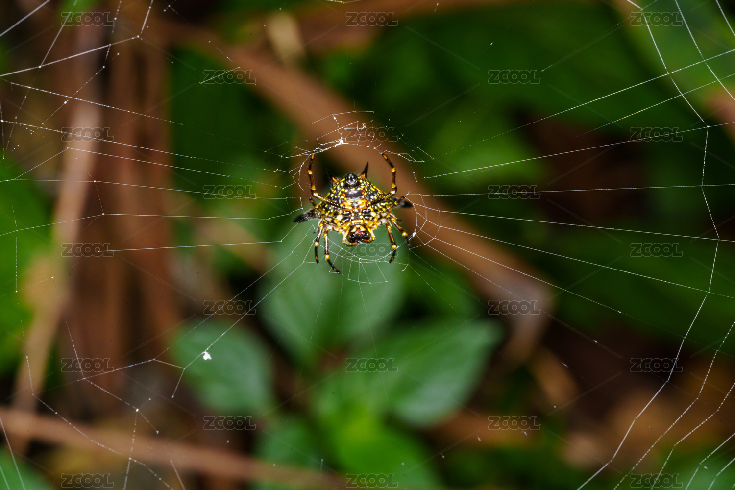 蛛网中央的斑斓蜘蛛