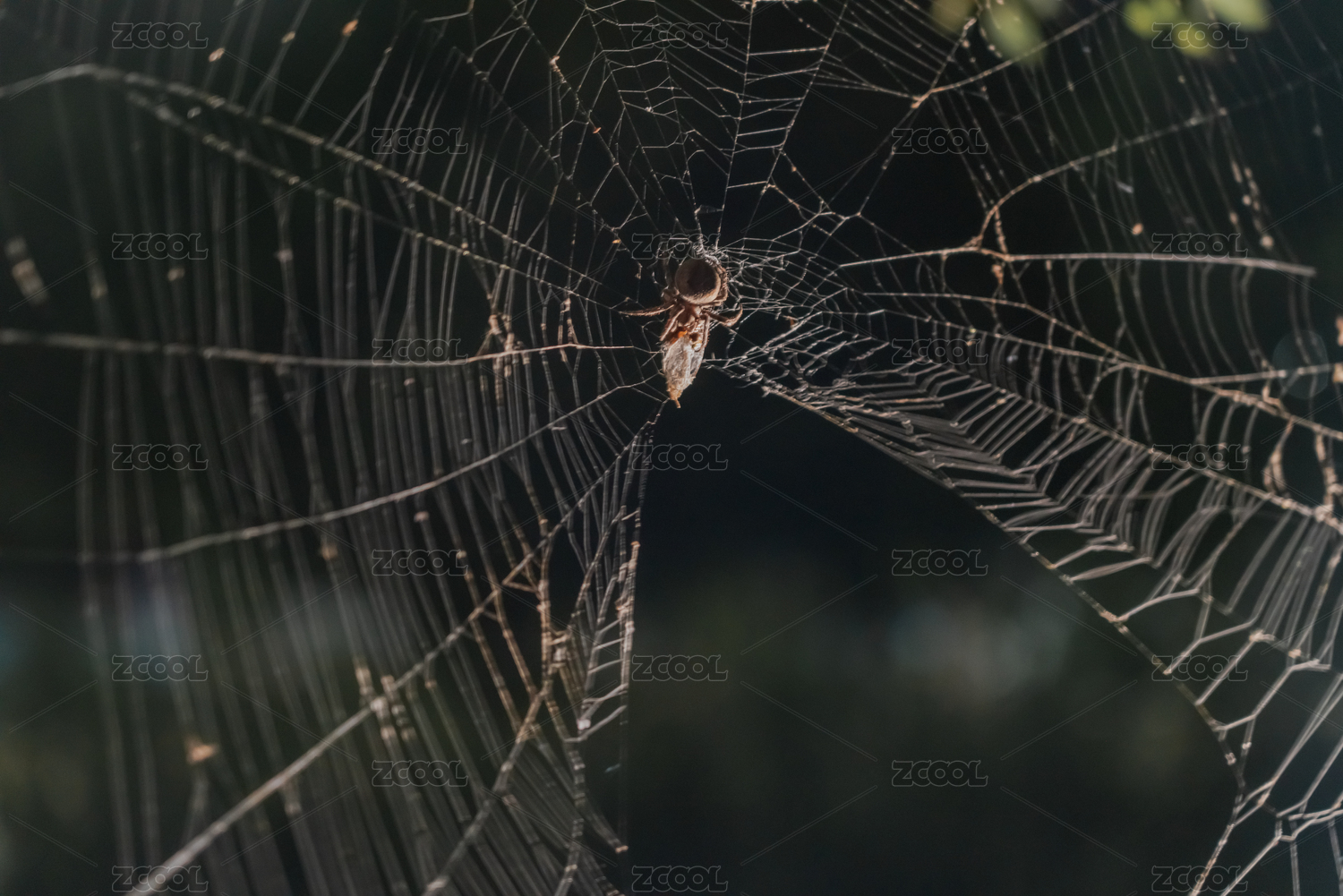 蜘蛛在蛛网上捕食的微距特写