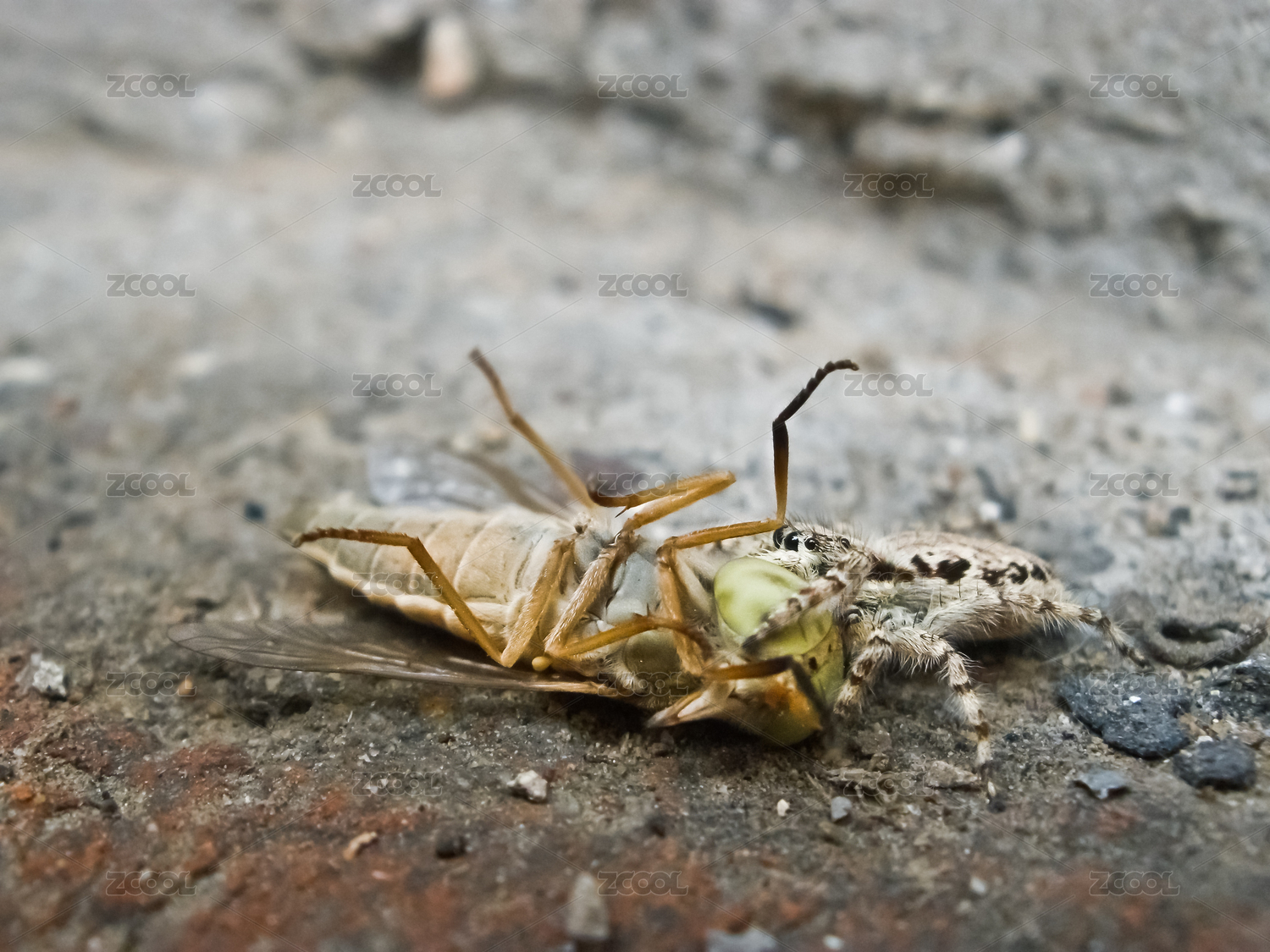 蜘蛛捕食昆虫微距拍摄