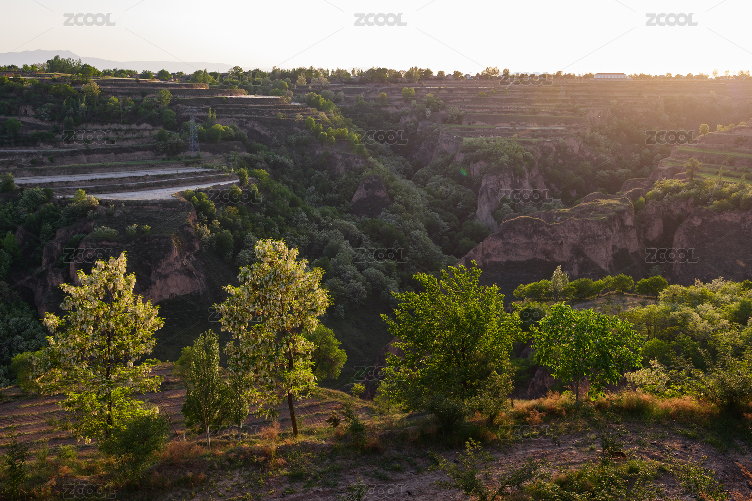 沟壑纵横的黄土高原夏天漫山遍野的绿色植被