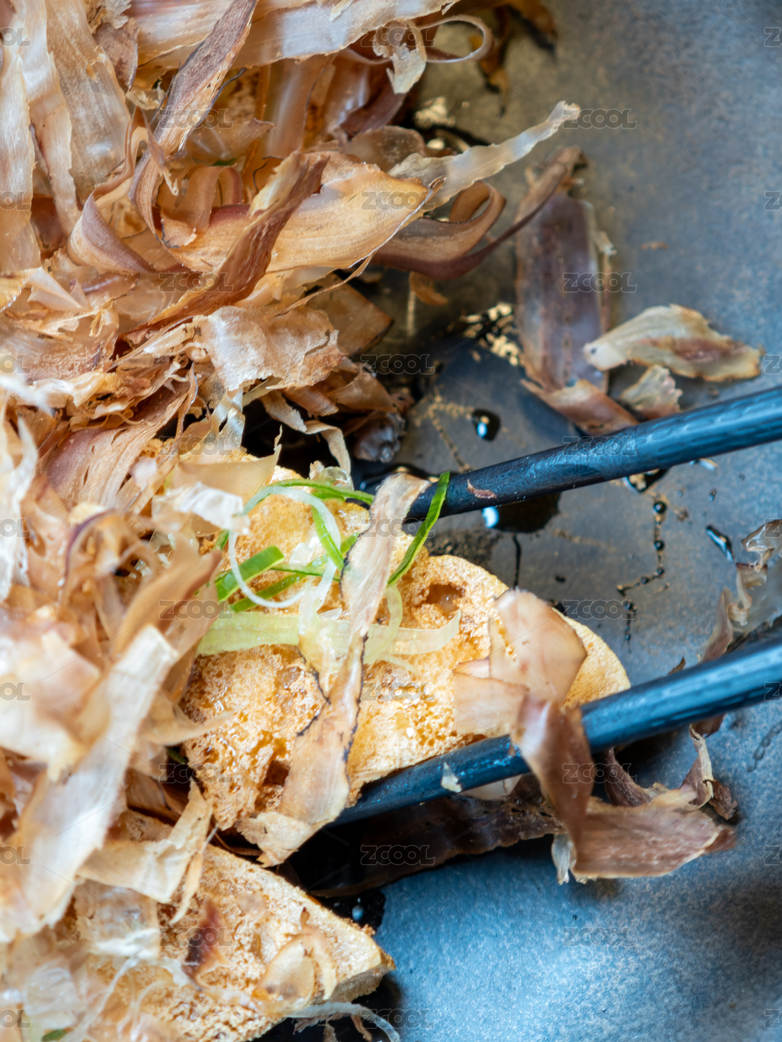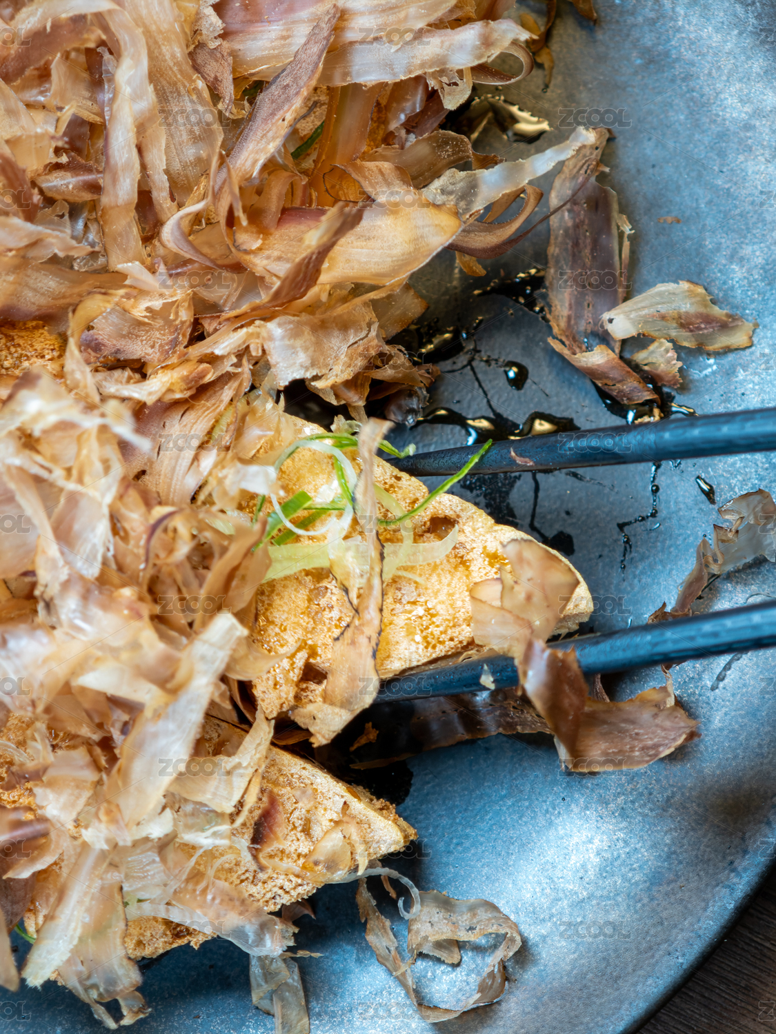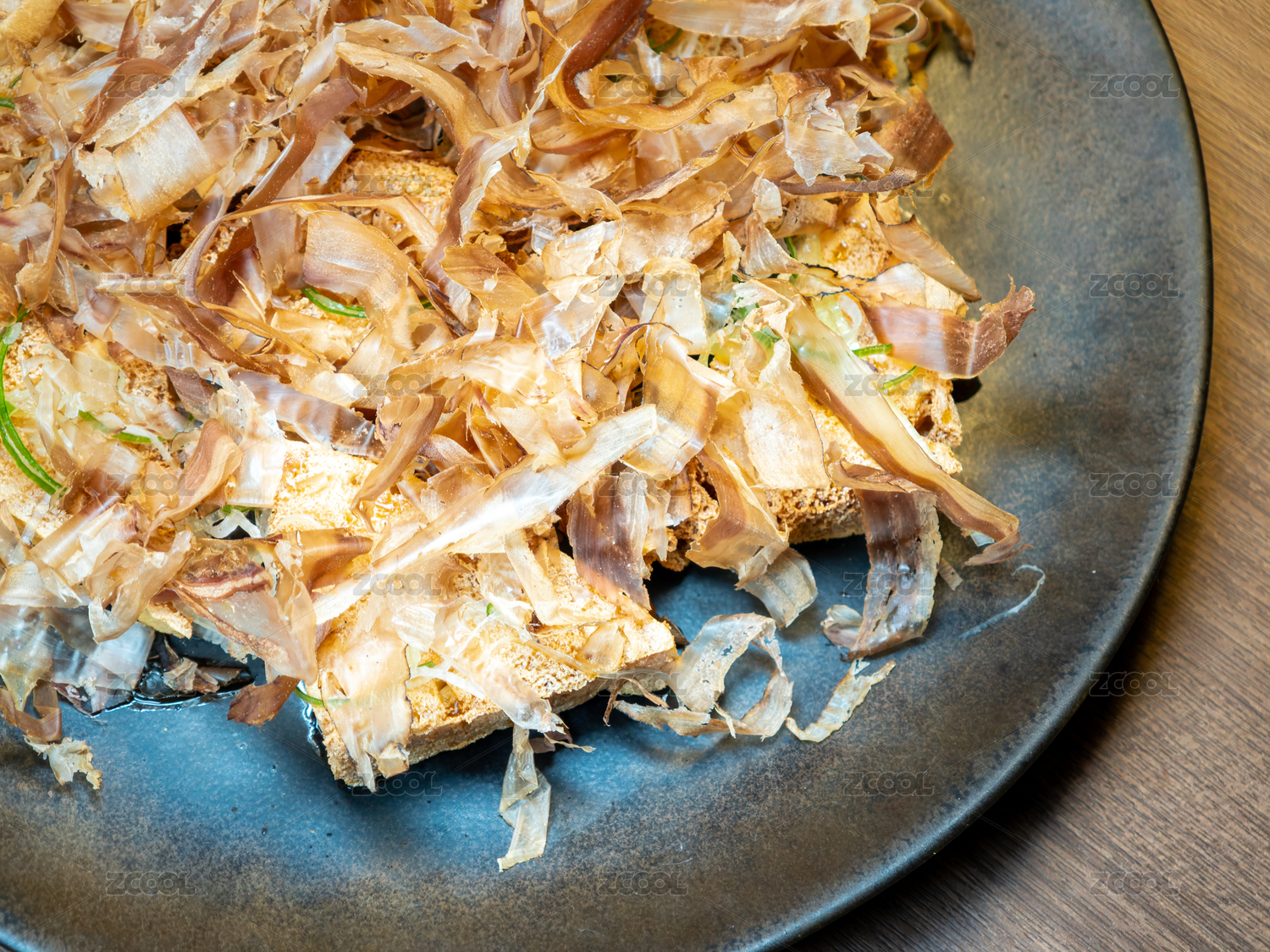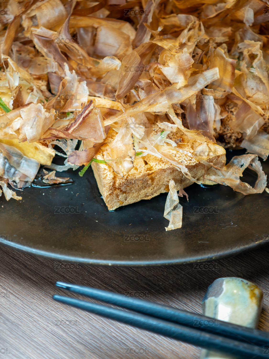 撒上鲣鱼花的炸豆腐