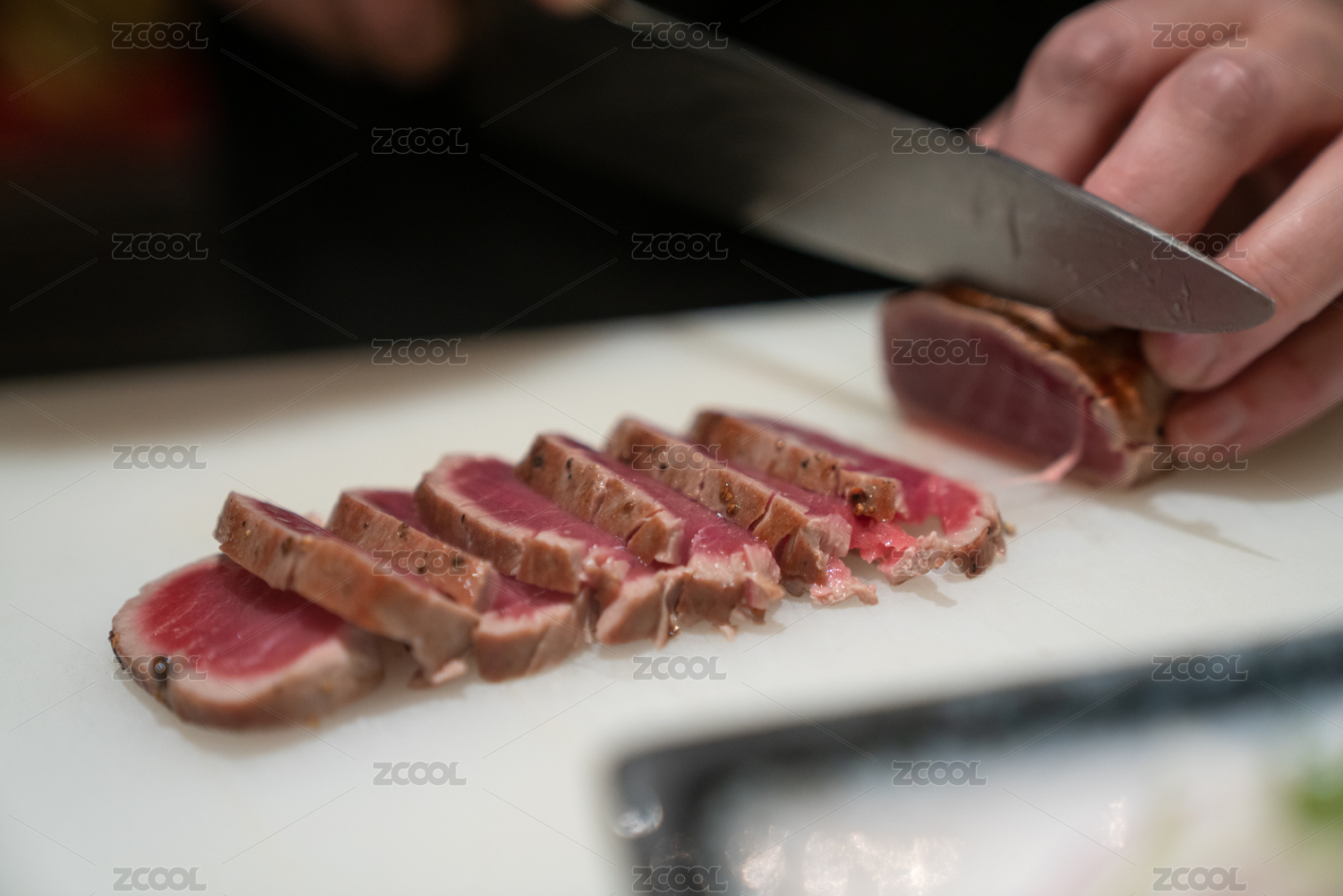 厨师正在用刀给烤好的鲣鱼切片