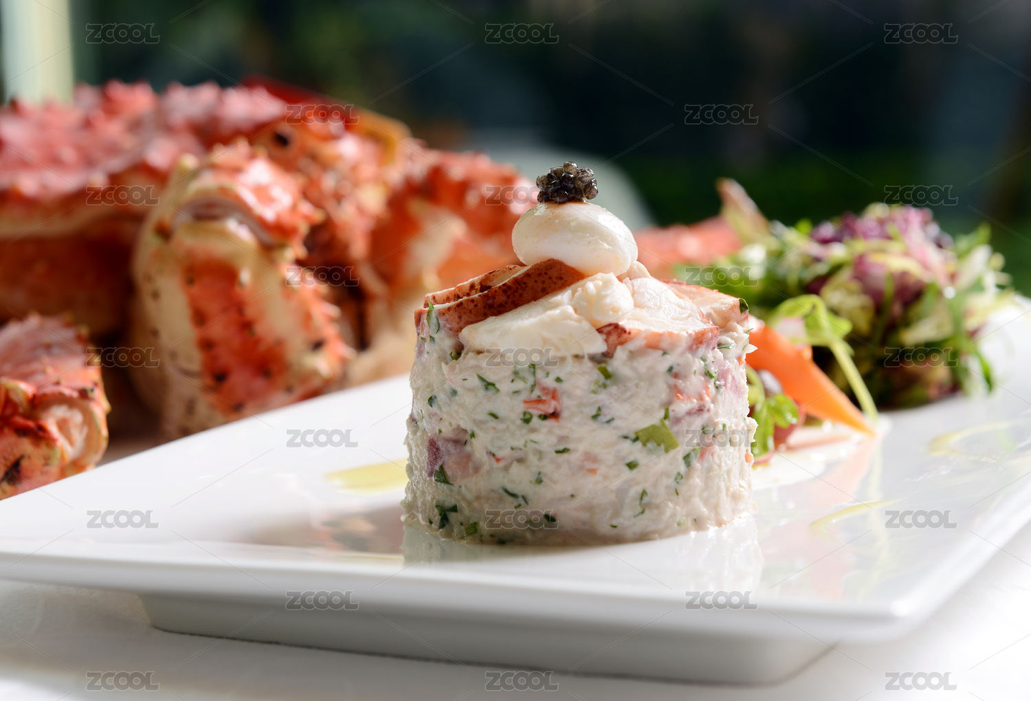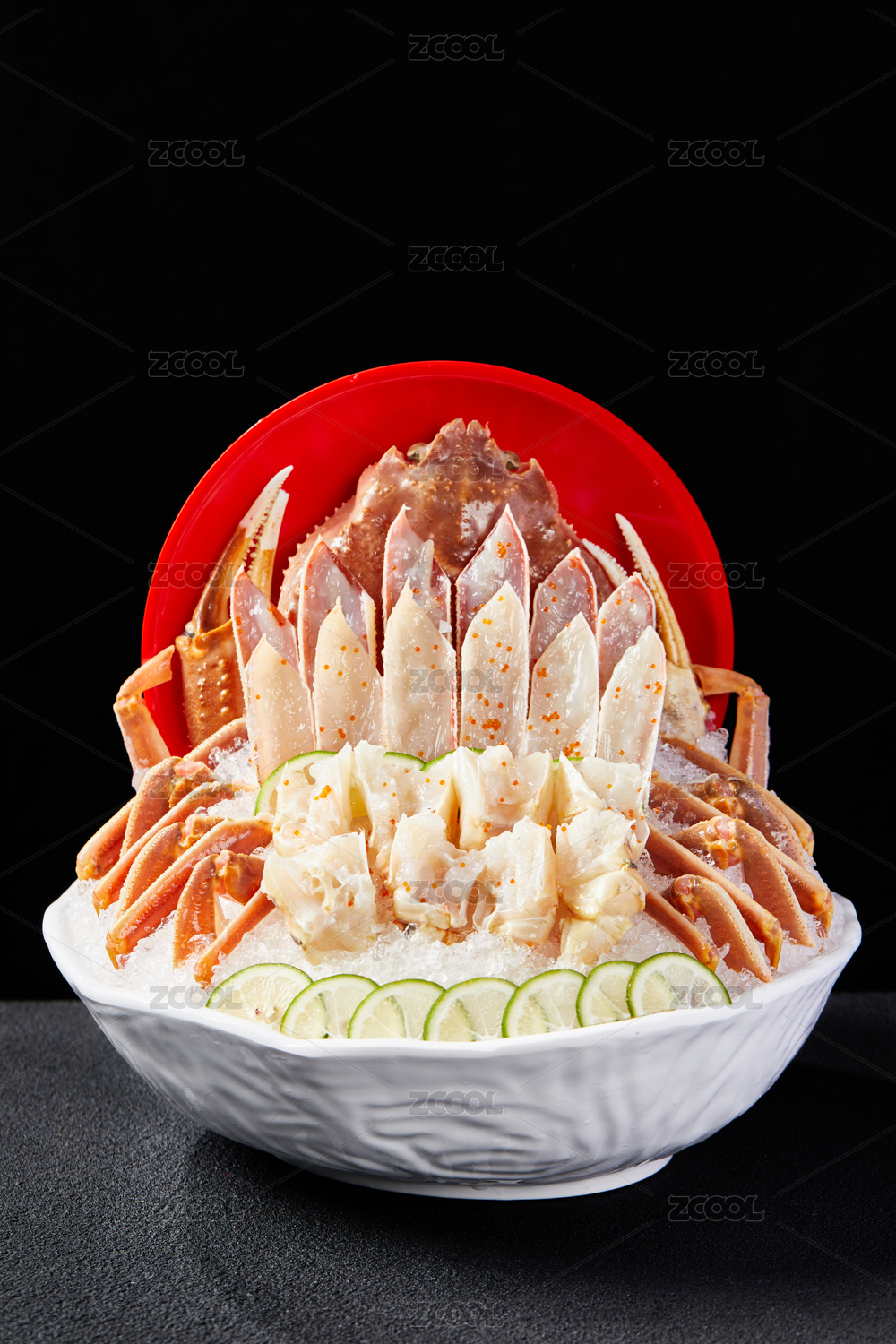 高级自助餐海鲜餐台摆放的帝王蟹脚