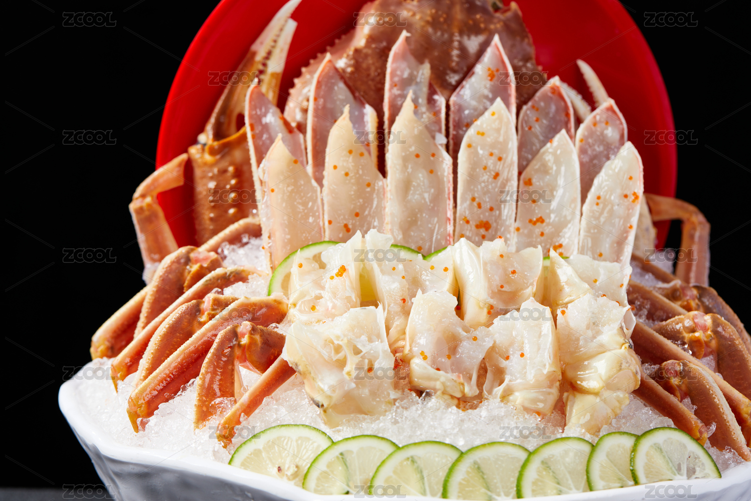 高档自助餐海鲜餐台摆放的帝王蟹腿