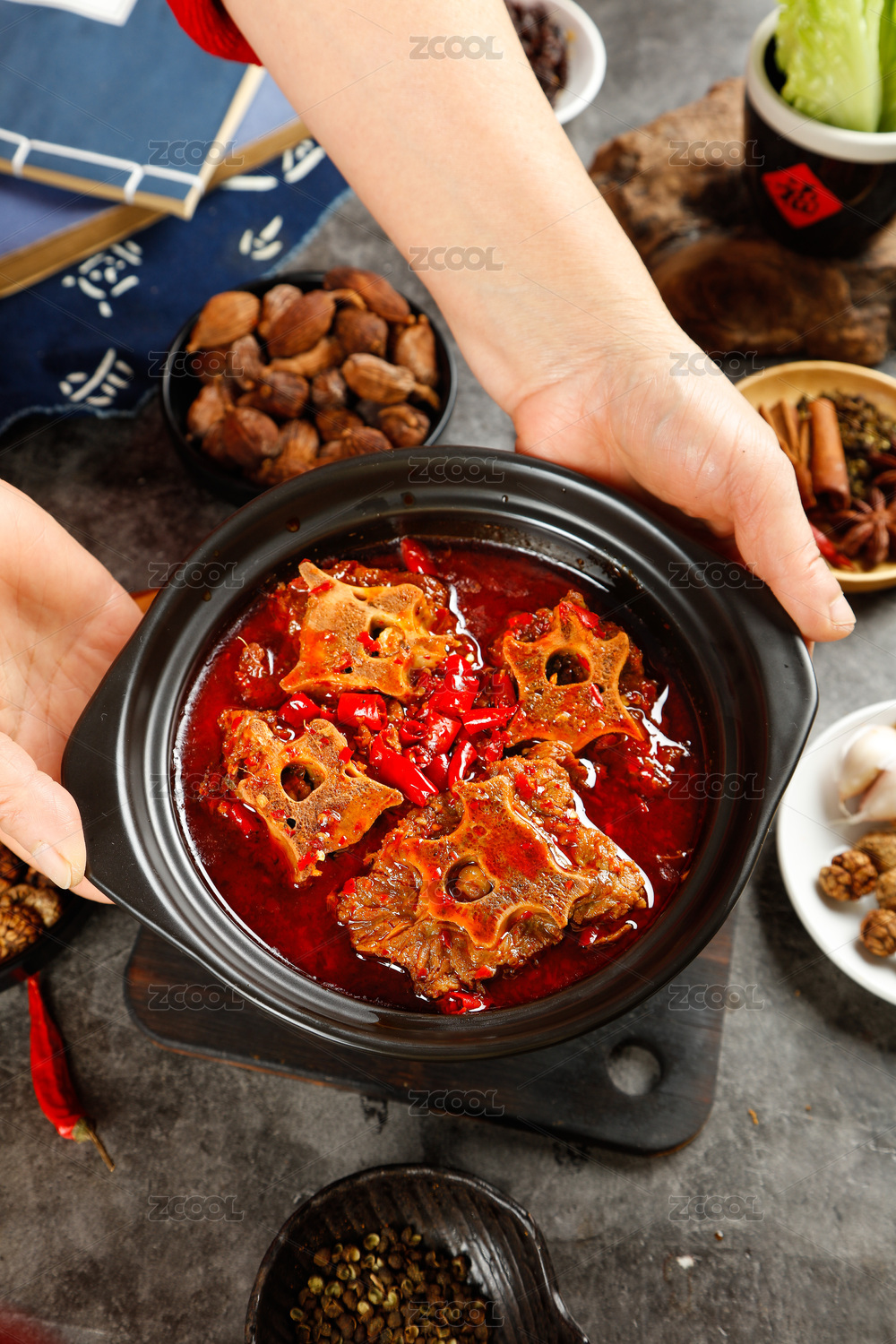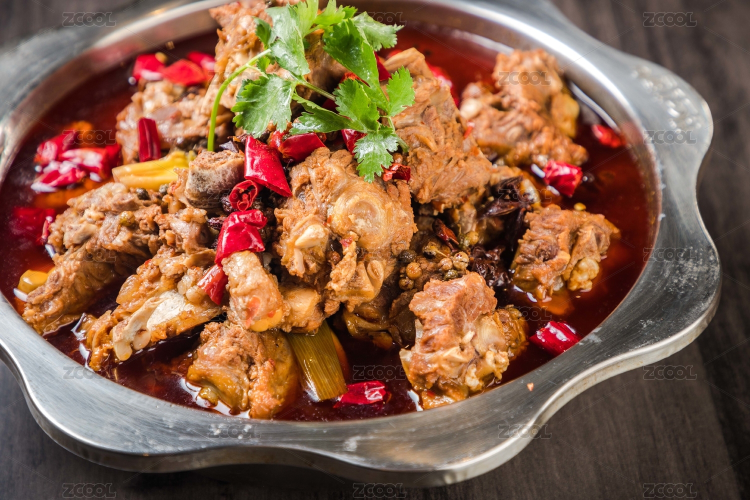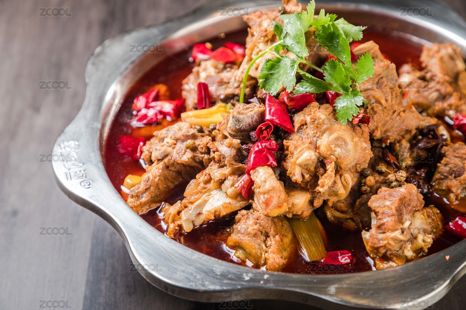 手上端着一锅麻辣鲜香羊脊骨