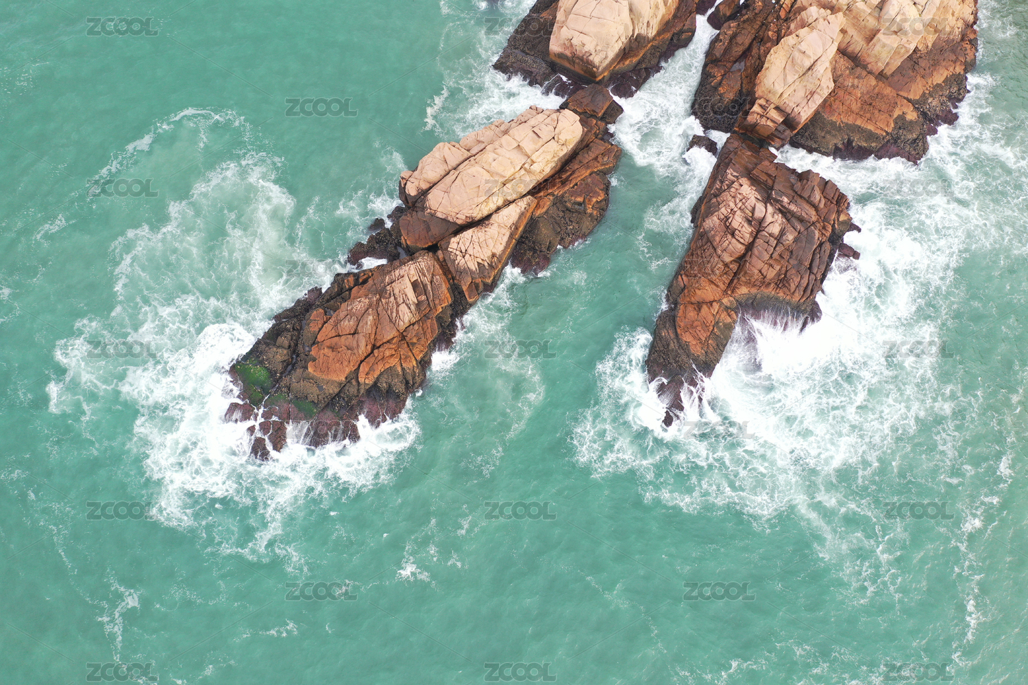 航拍的浙江嵊泗枸杞岛旅游地标风光——-海浪礁石