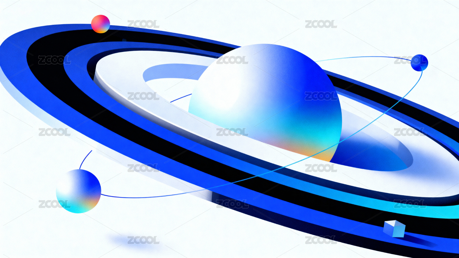 白色星球与环带的科技艺术构图