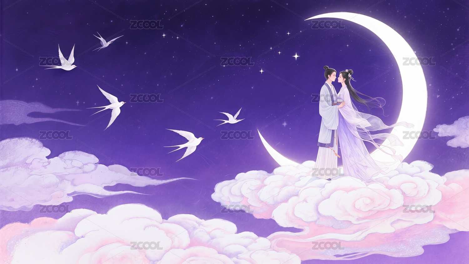 七夕节牛郎和织女相会的插画