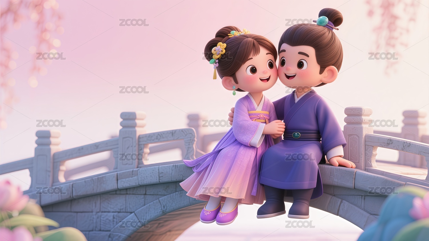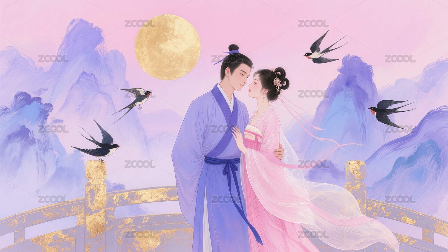 七夕节情人节情侣插画
