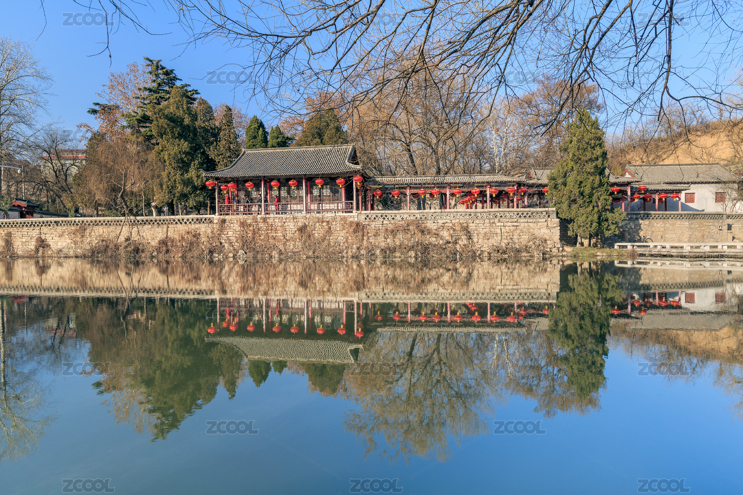 青州范公亭公园洋溪湖畔的顺河楼古建筑