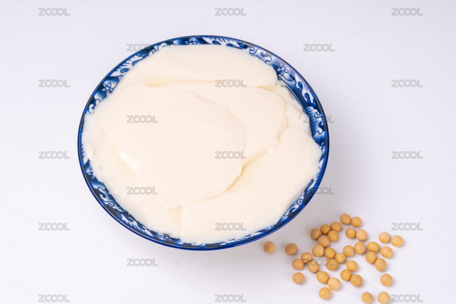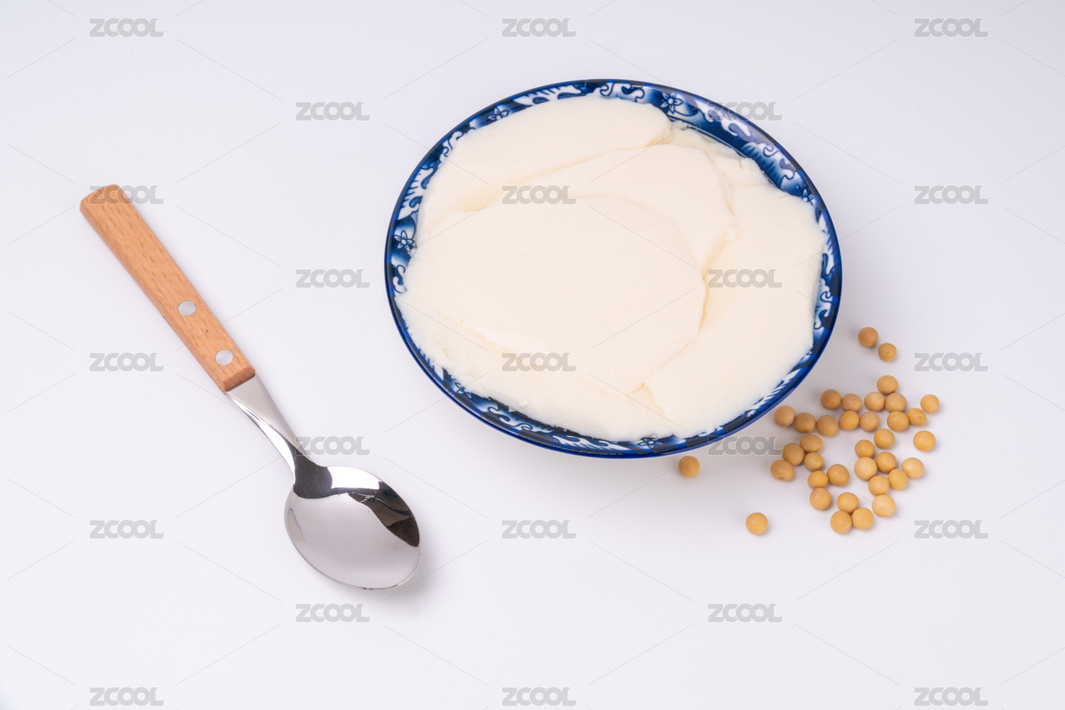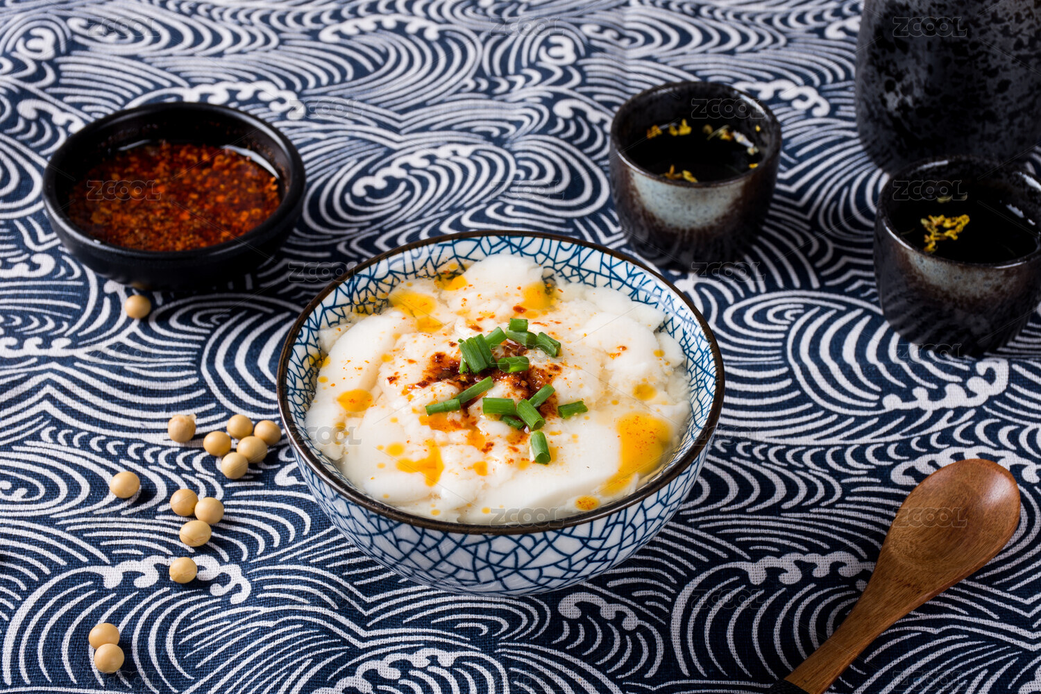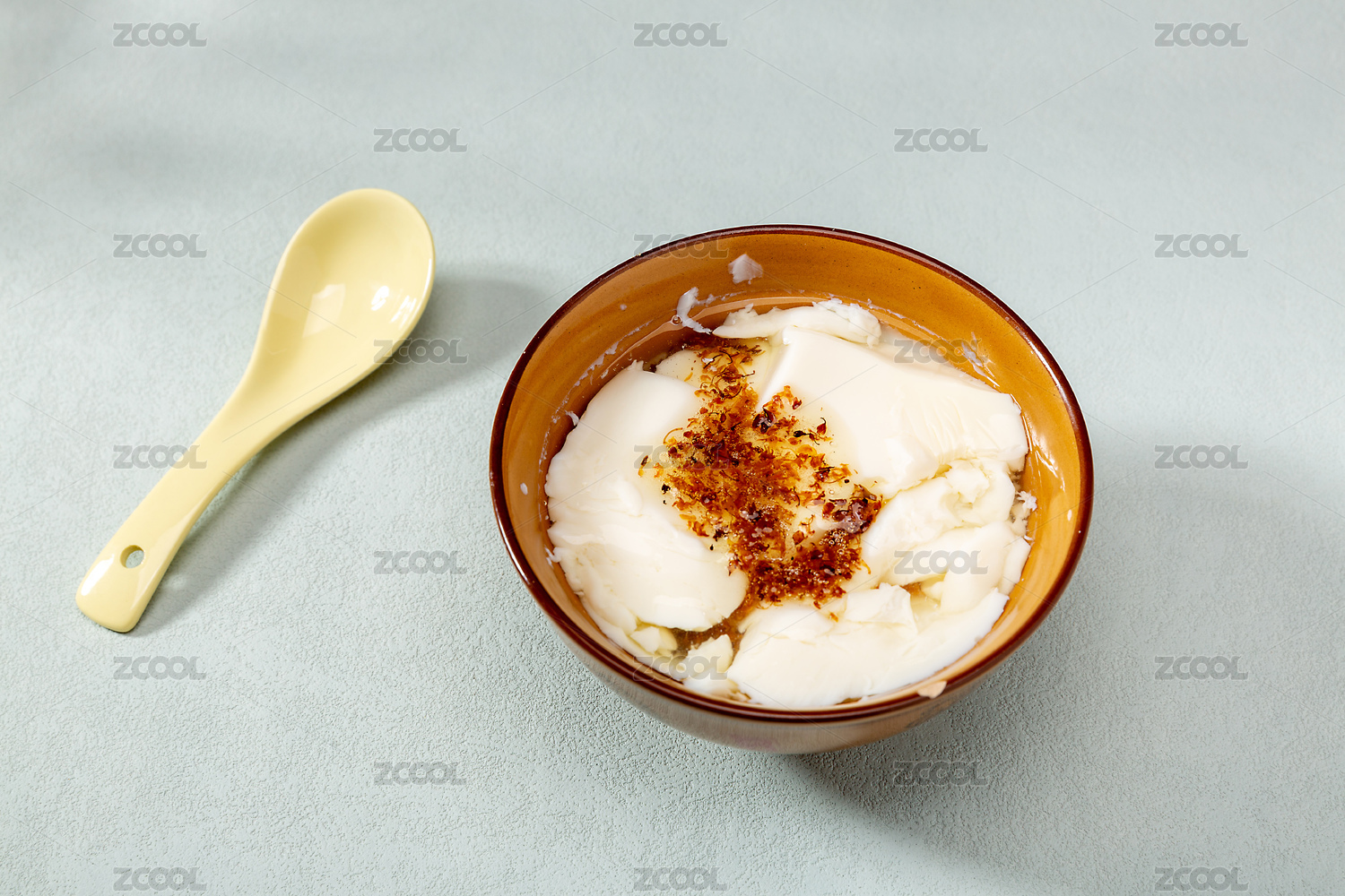 桌面上的陶瓷碗里的豆腐脑