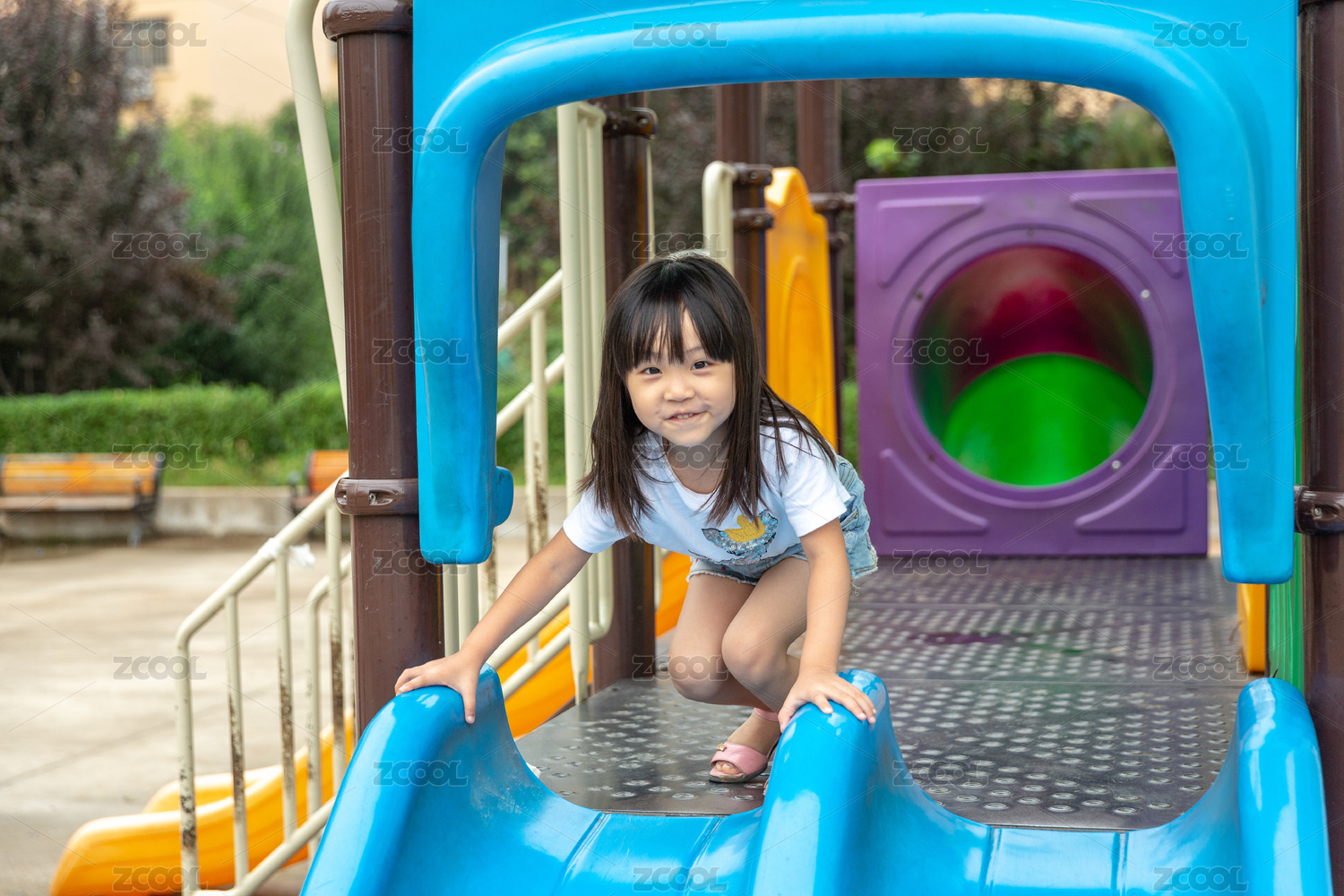 一个小女孩穿着蓝色公主裙安静的坐在绿色的草地上
