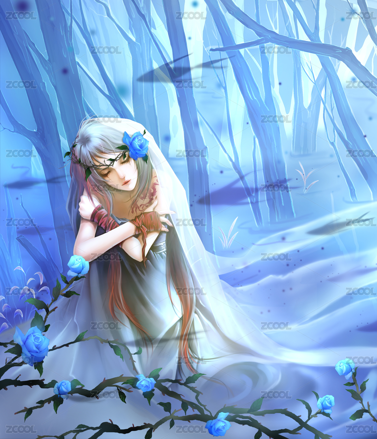 蓝色浪漫二次元头像天国的嫁衣婚纱女孩无字