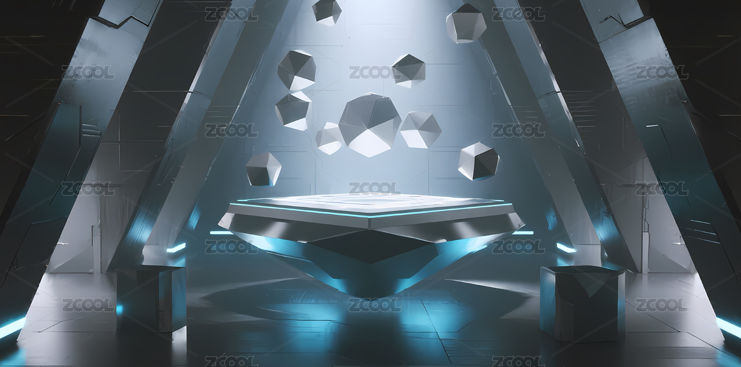 高科技科幻悬浮产品展示平台背景冷色环境光