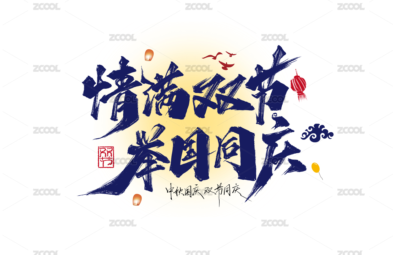 举国同庆盛世华诞国庆红绸鸽子矢量书法字