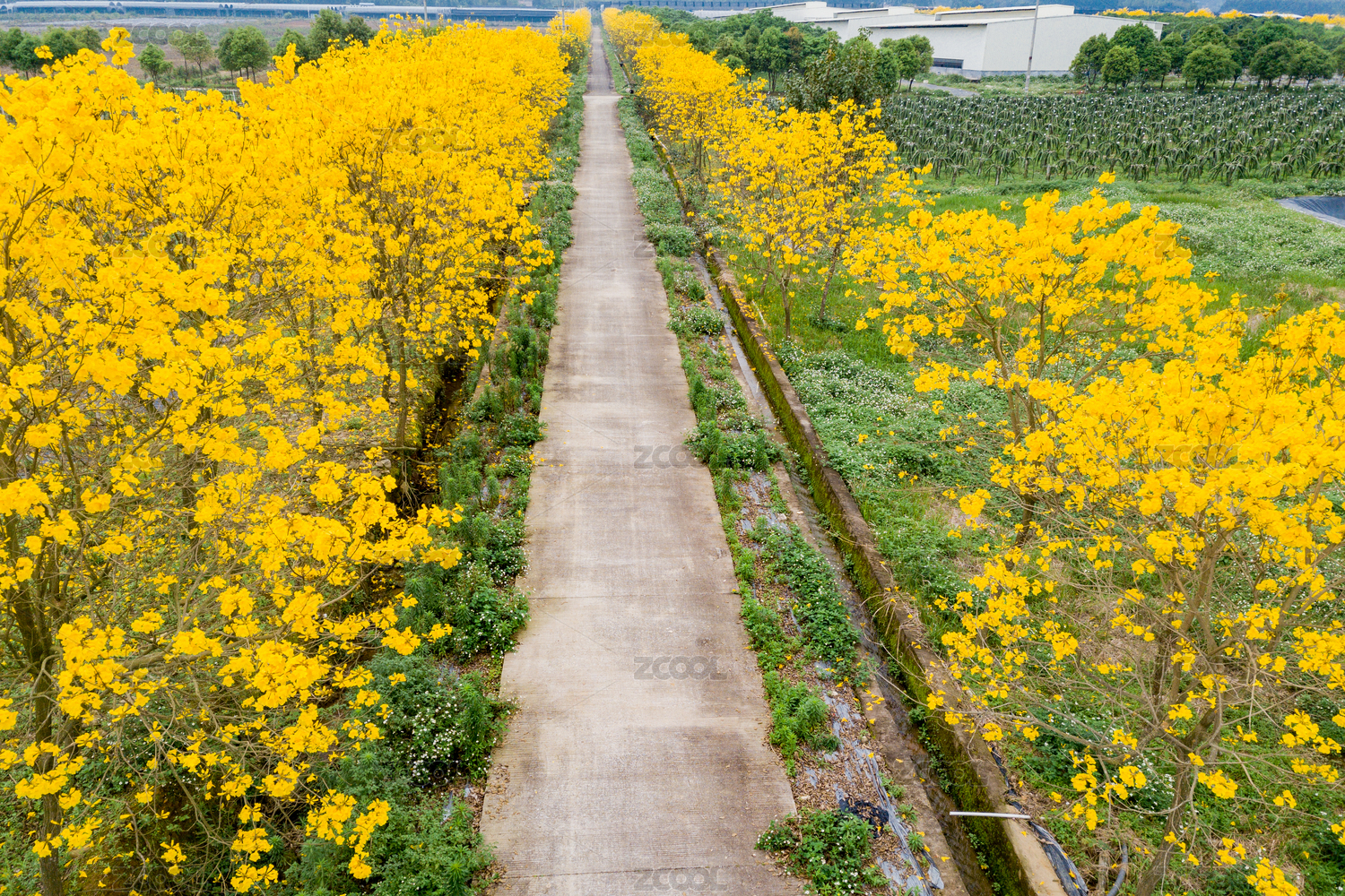 翁源县现代农业园区粤台管委会一路盛开的黄花风铃木