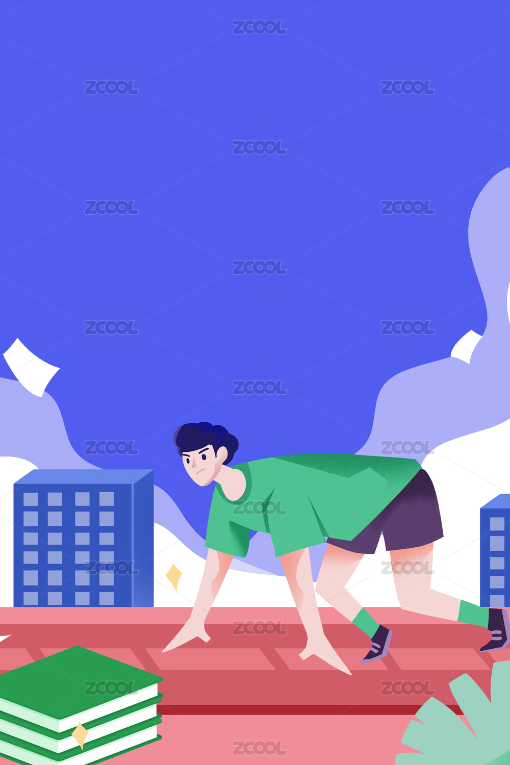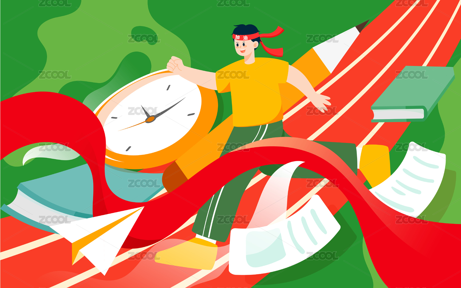 卡通手绘学生高考中考冲刺插画