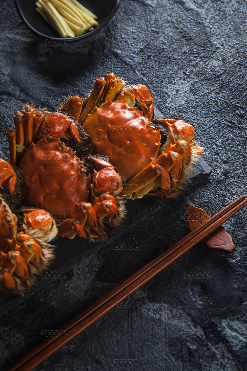 桌面上美味河蟹特写