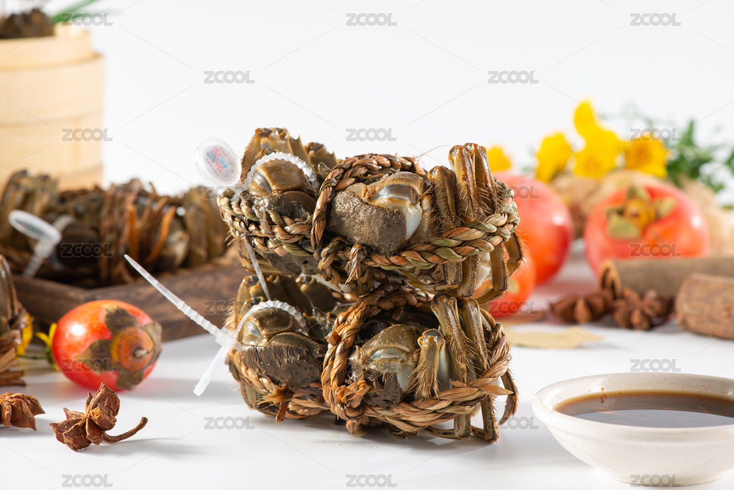 白底上放着大闸蟹