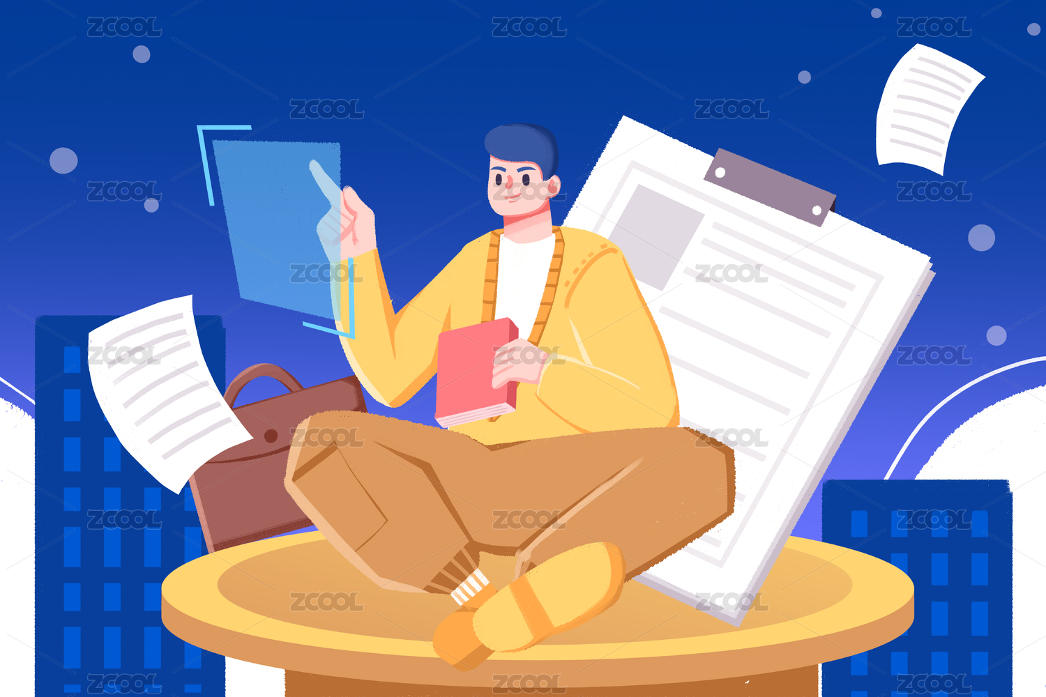 卡通蓝色手绘职场求职白领晋升闪屏海报插画
