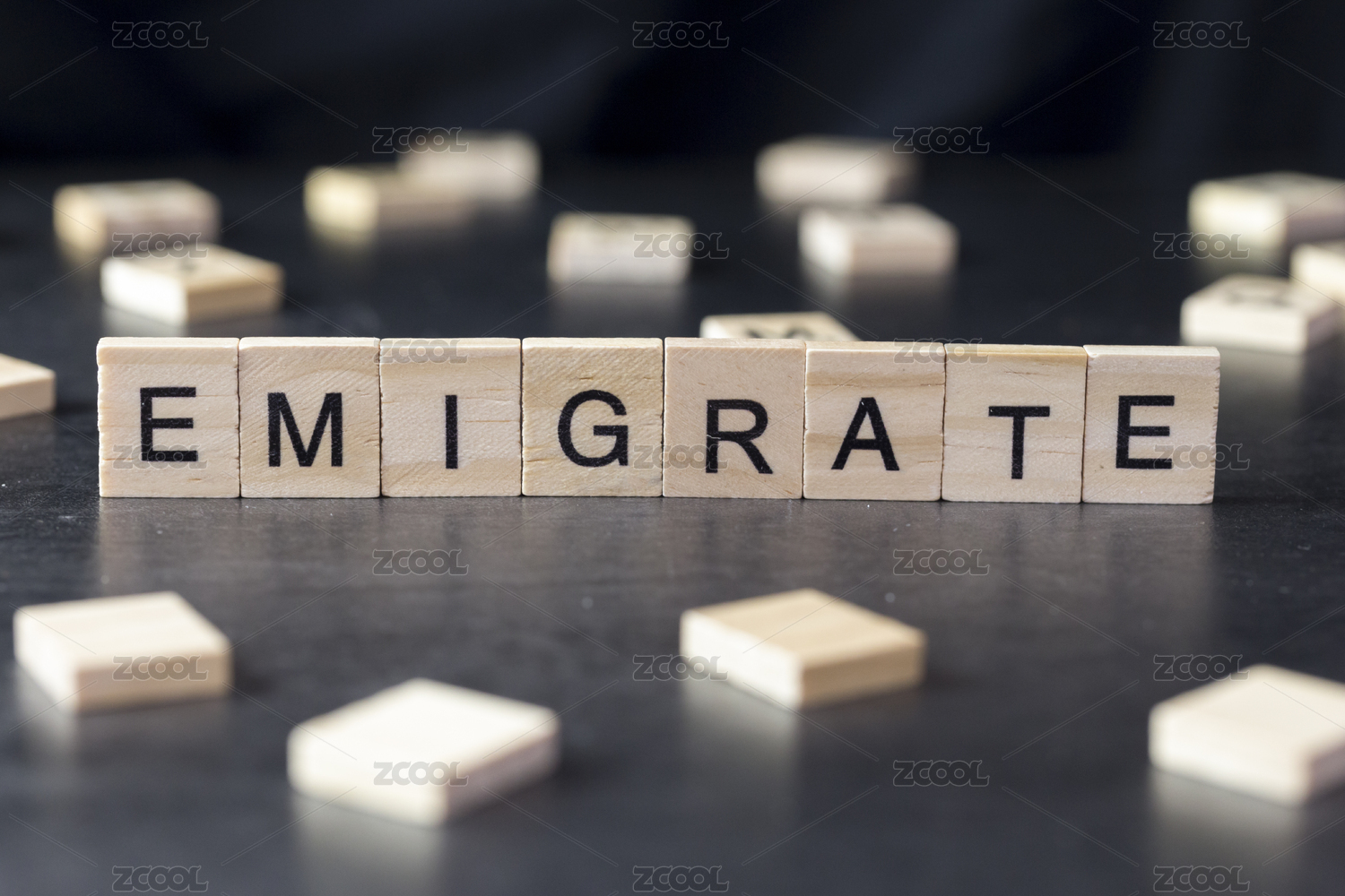 木制字母拼接的单词移居emigrate
