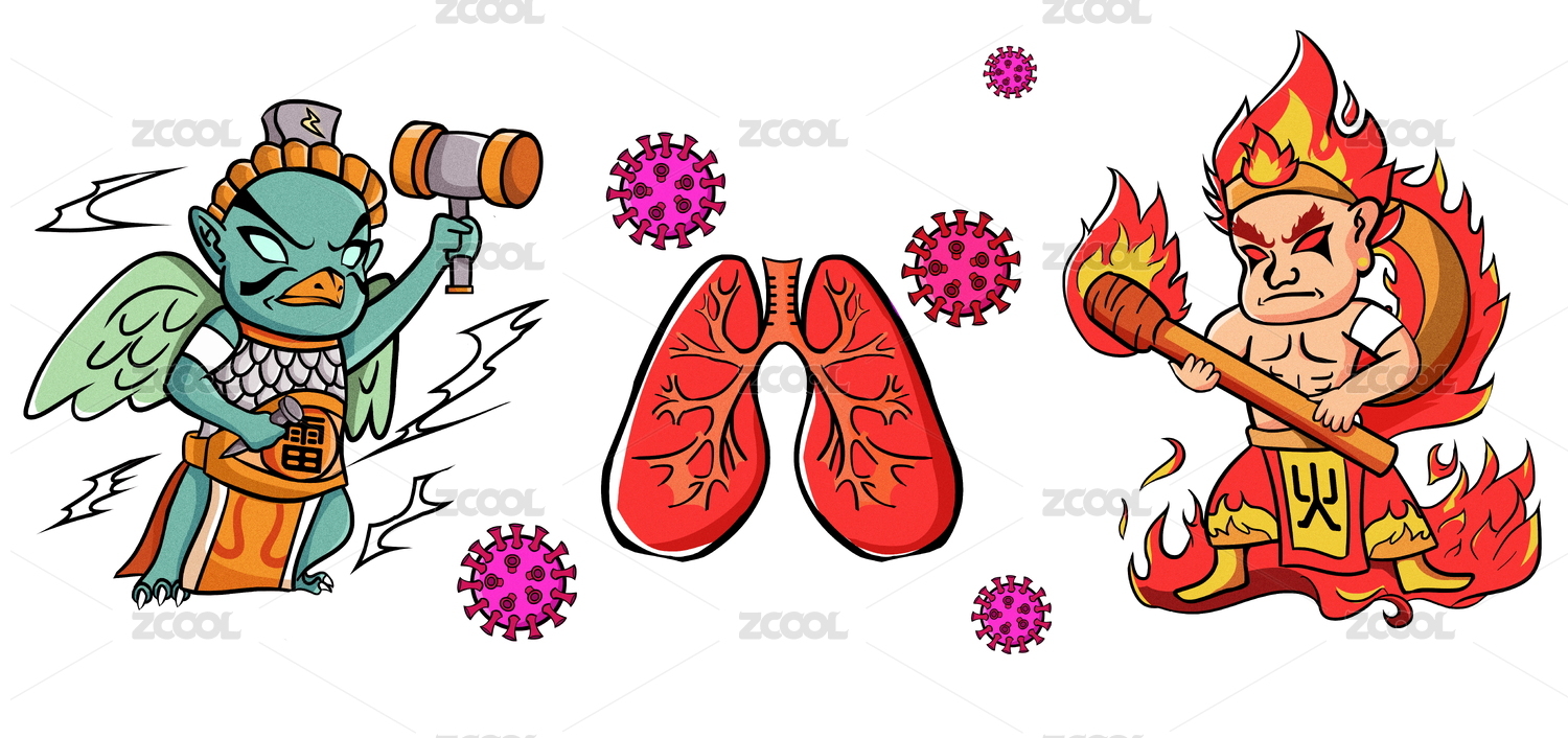 雷神火神共战肺炎疫情插画