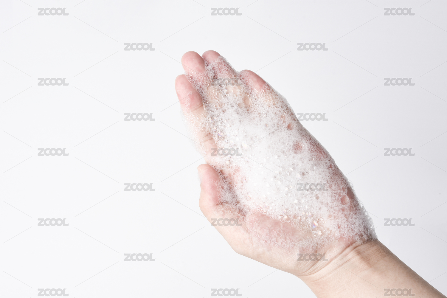 白底模特细腻绵密手心泡沫泡泡