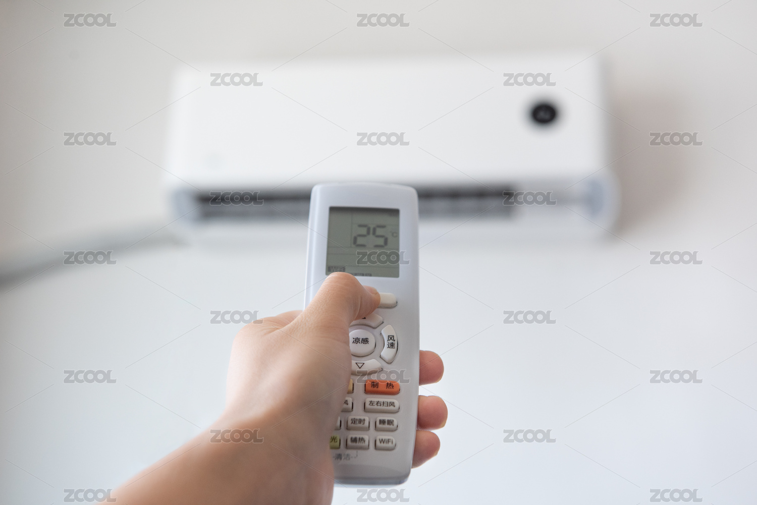手拿空调遥控器开空调特写