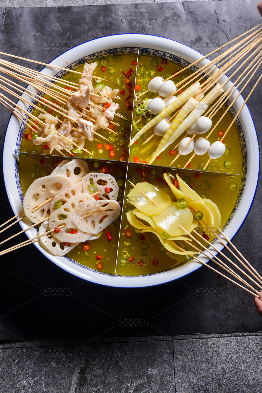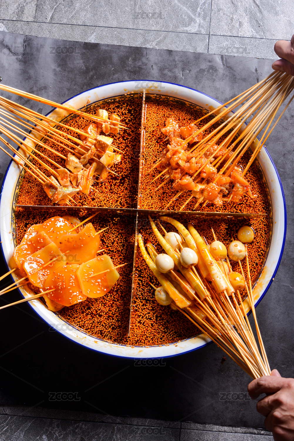 一盆四格腌制冷串被捞起来
