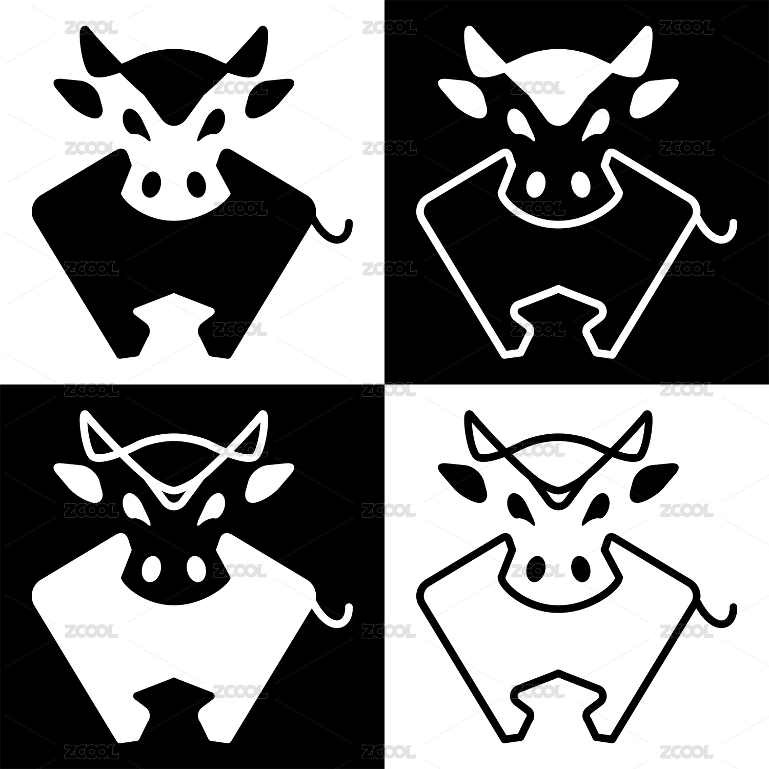 牛logo正面直视形体装饰画线条黑白色块