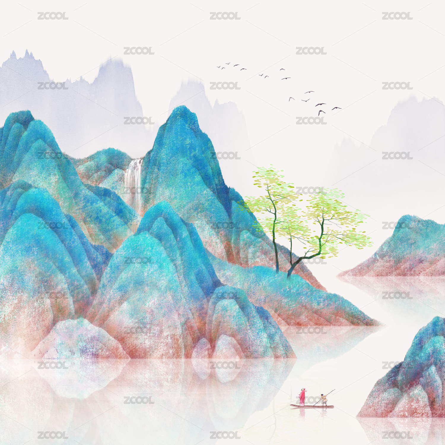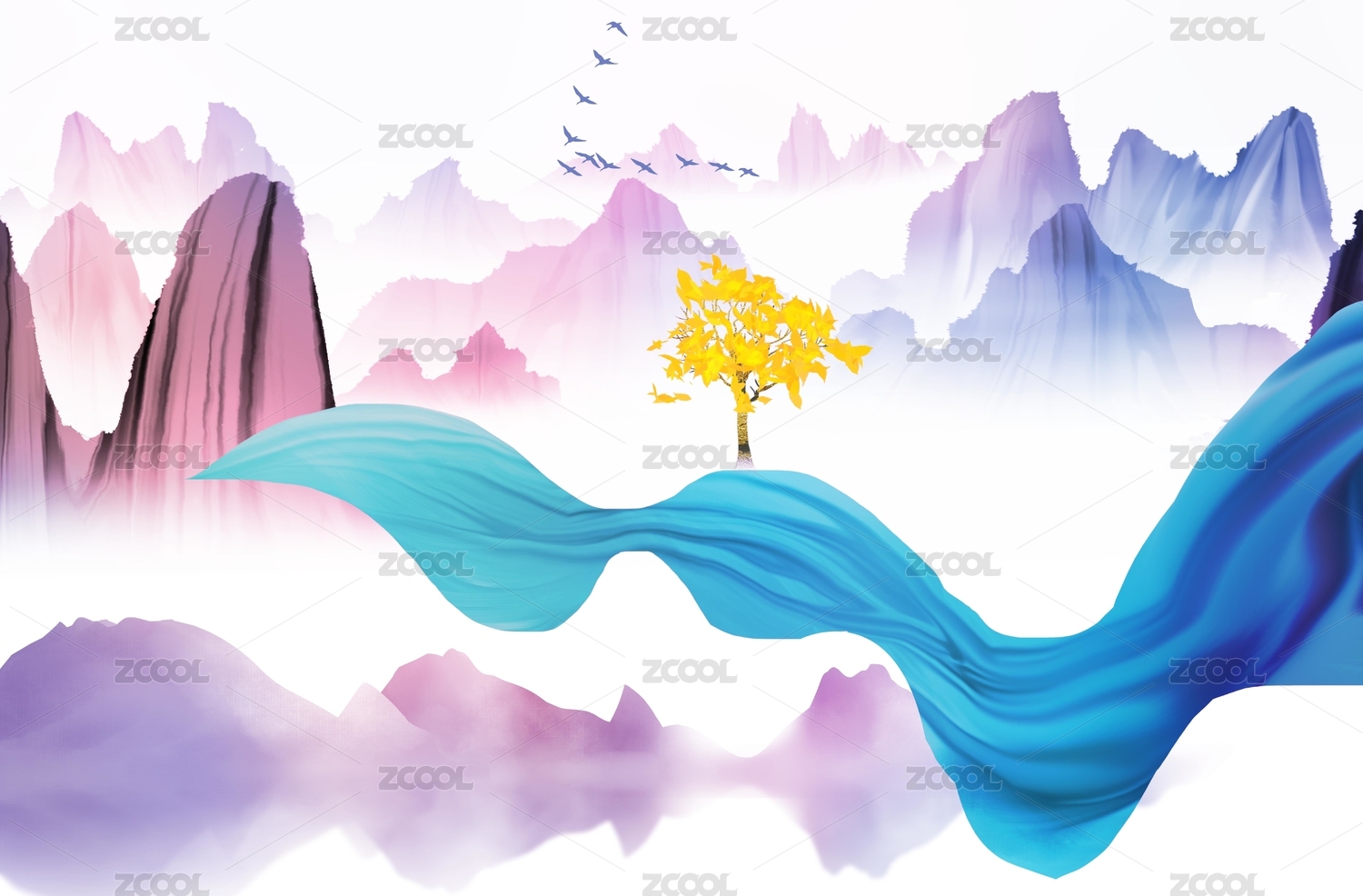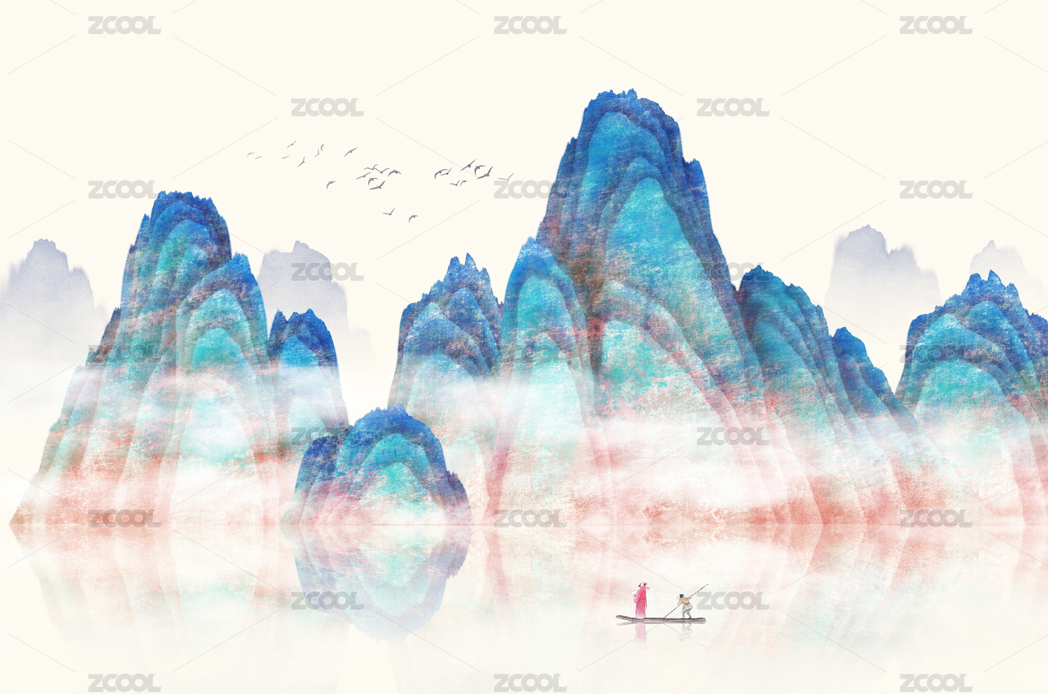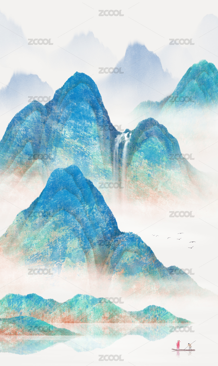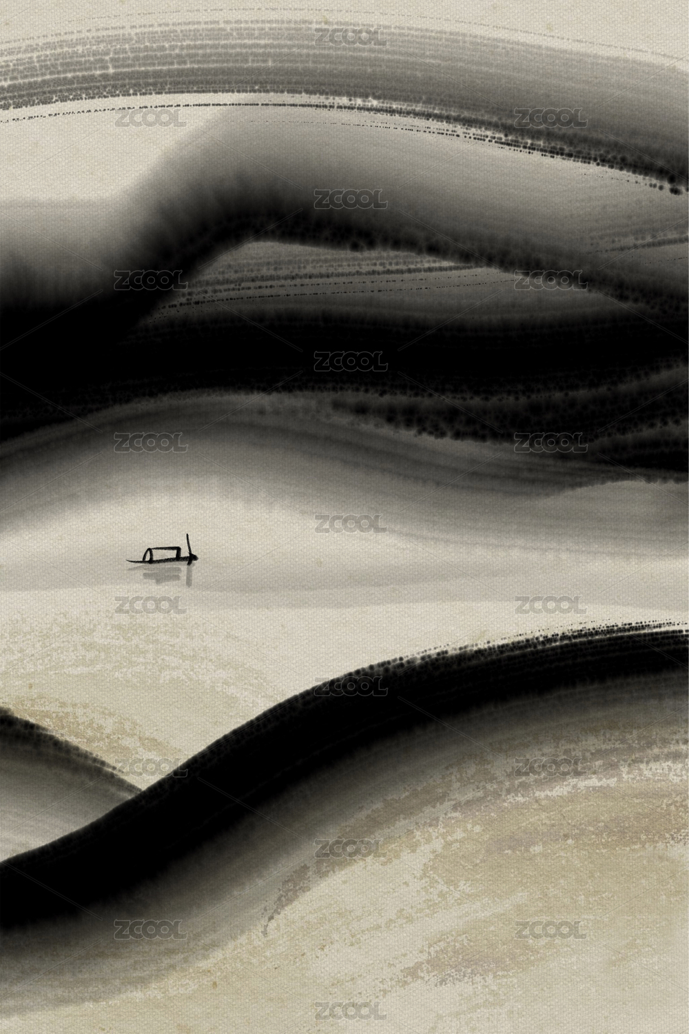 写意中国风意境水墨山水画 轻奢新中式抽象山水画