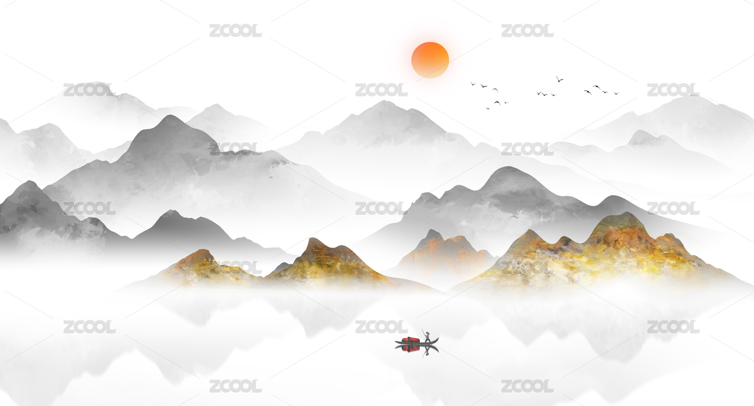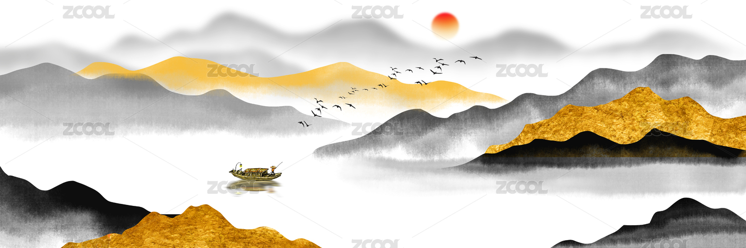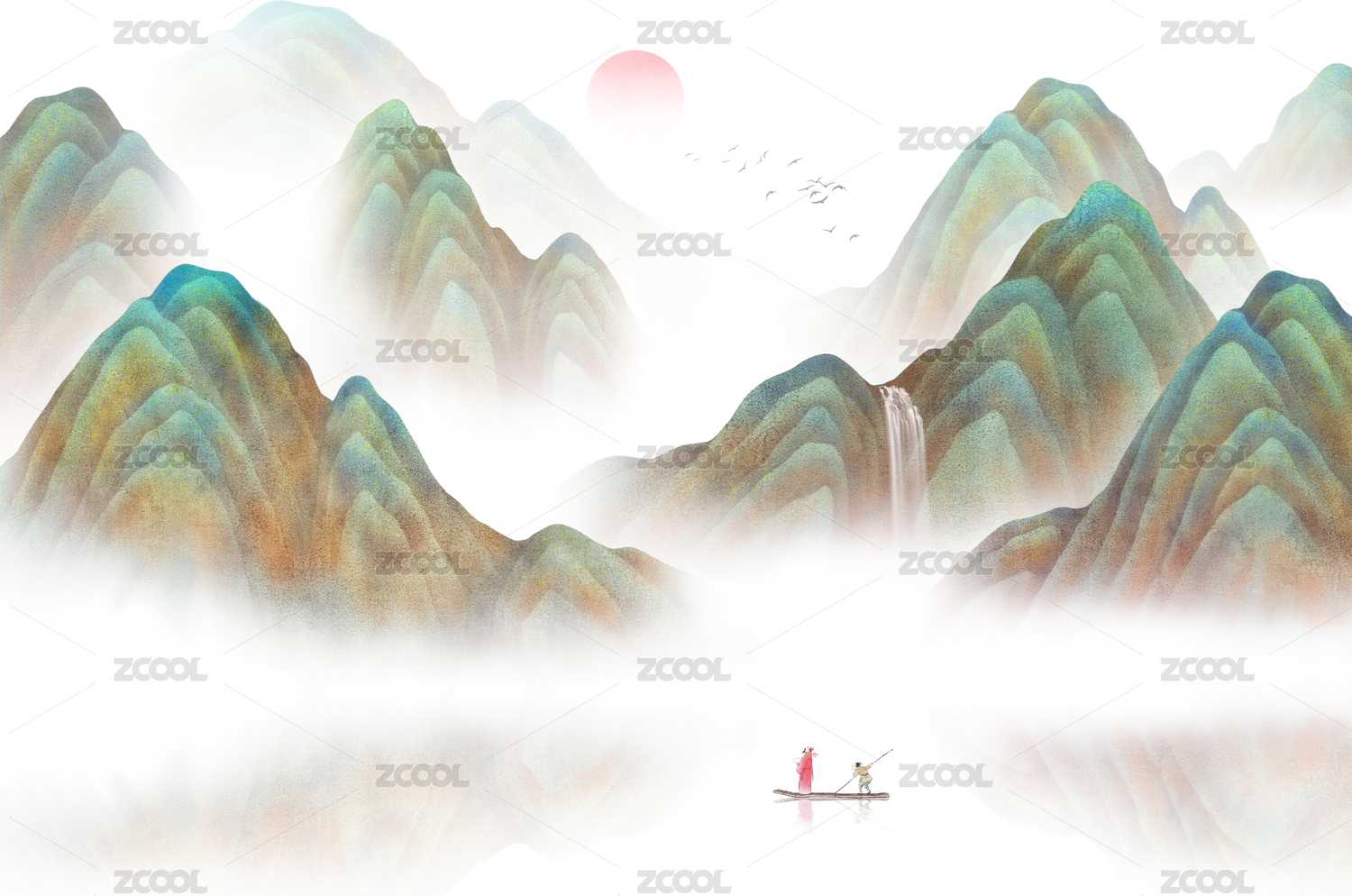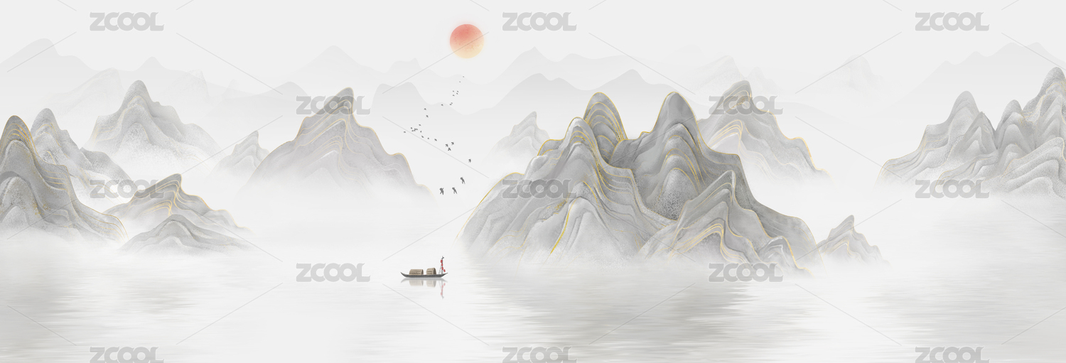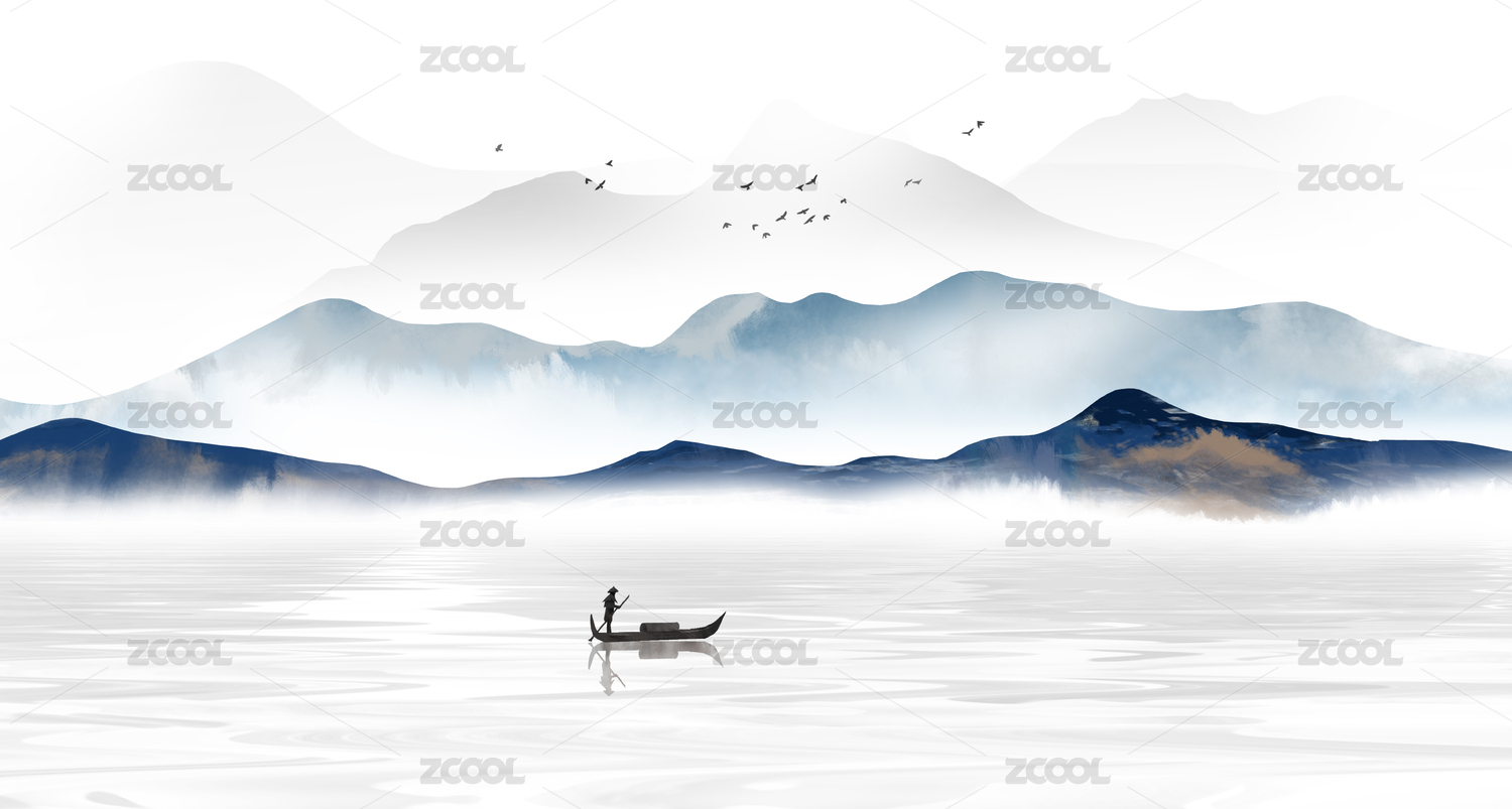 写意中国风意境水墨山水画 轻奢新中式抽象山水画