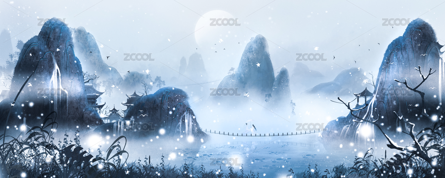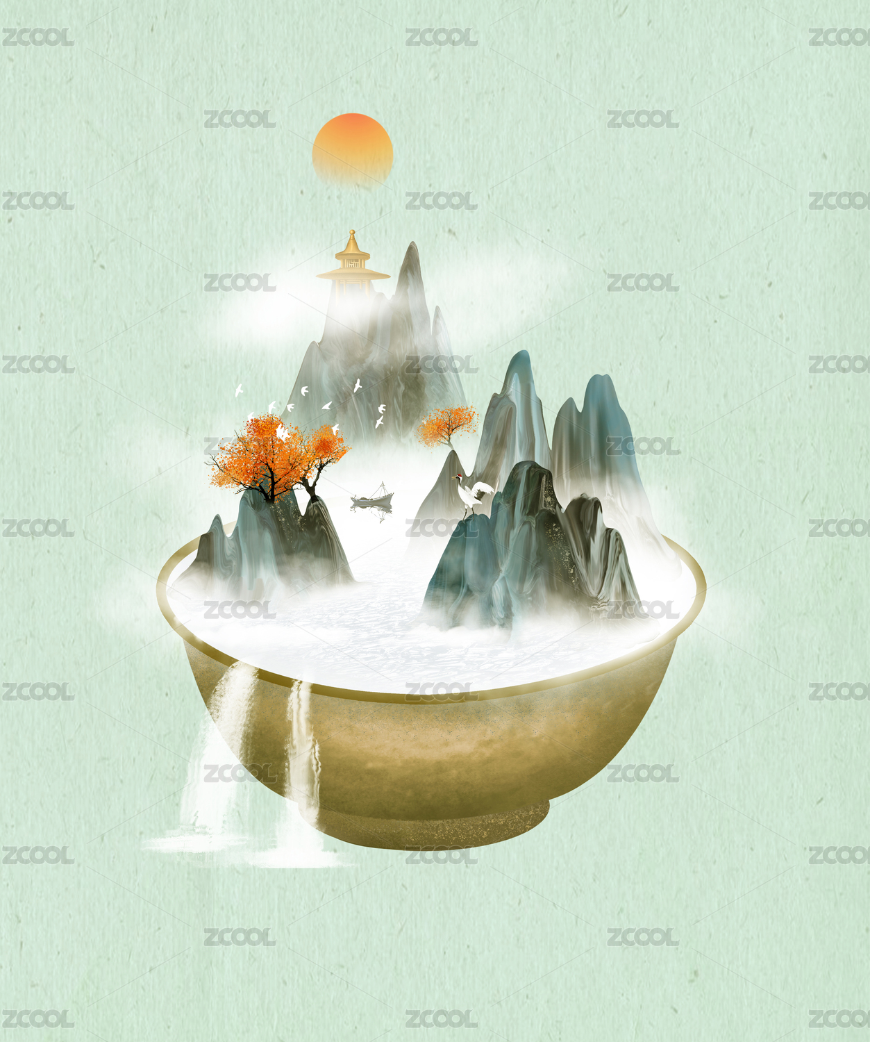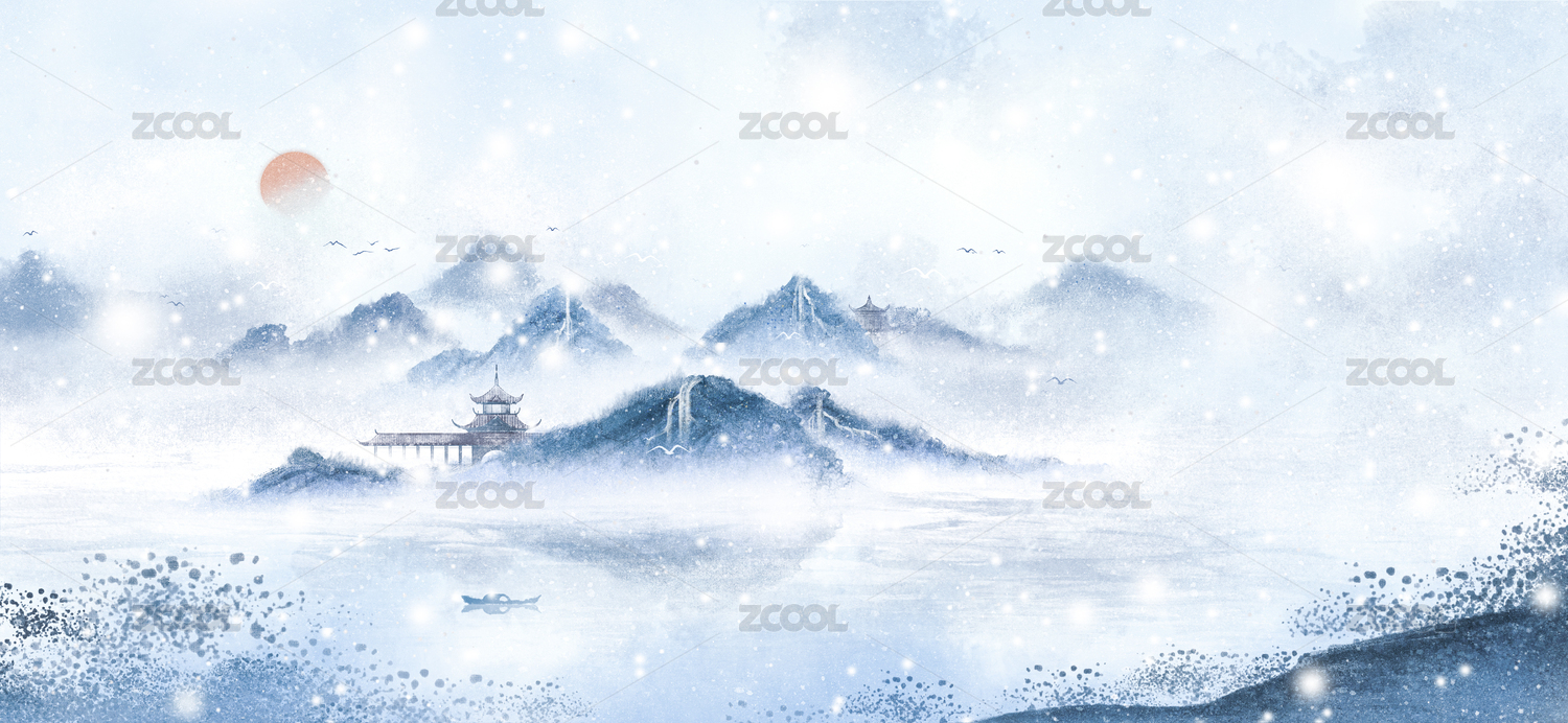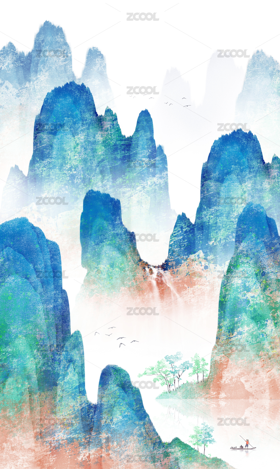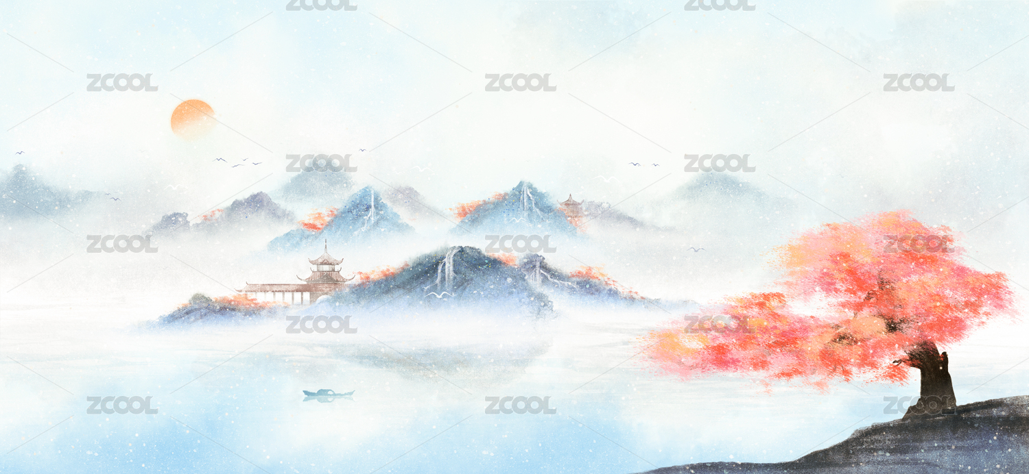 写意中国风意境水墨山水画 轻奢新中式抽象山水画