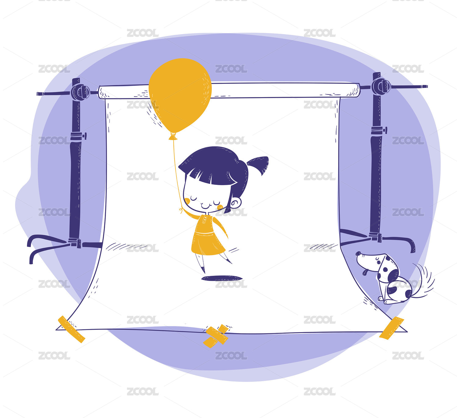拿着黄色气球儿童在白色背景下拍照