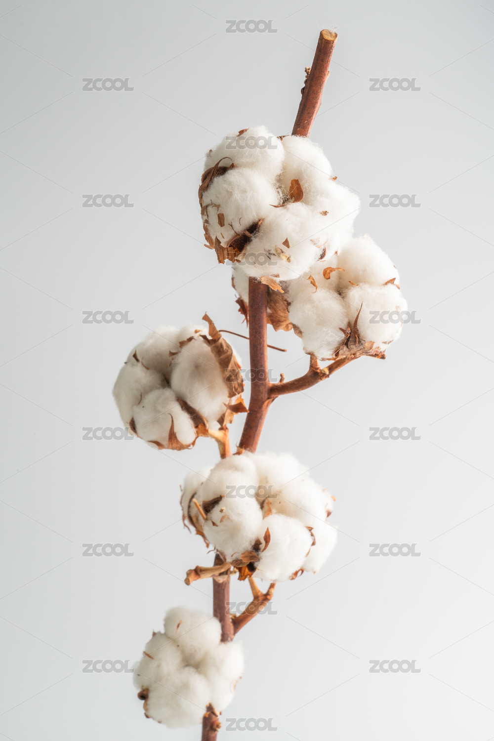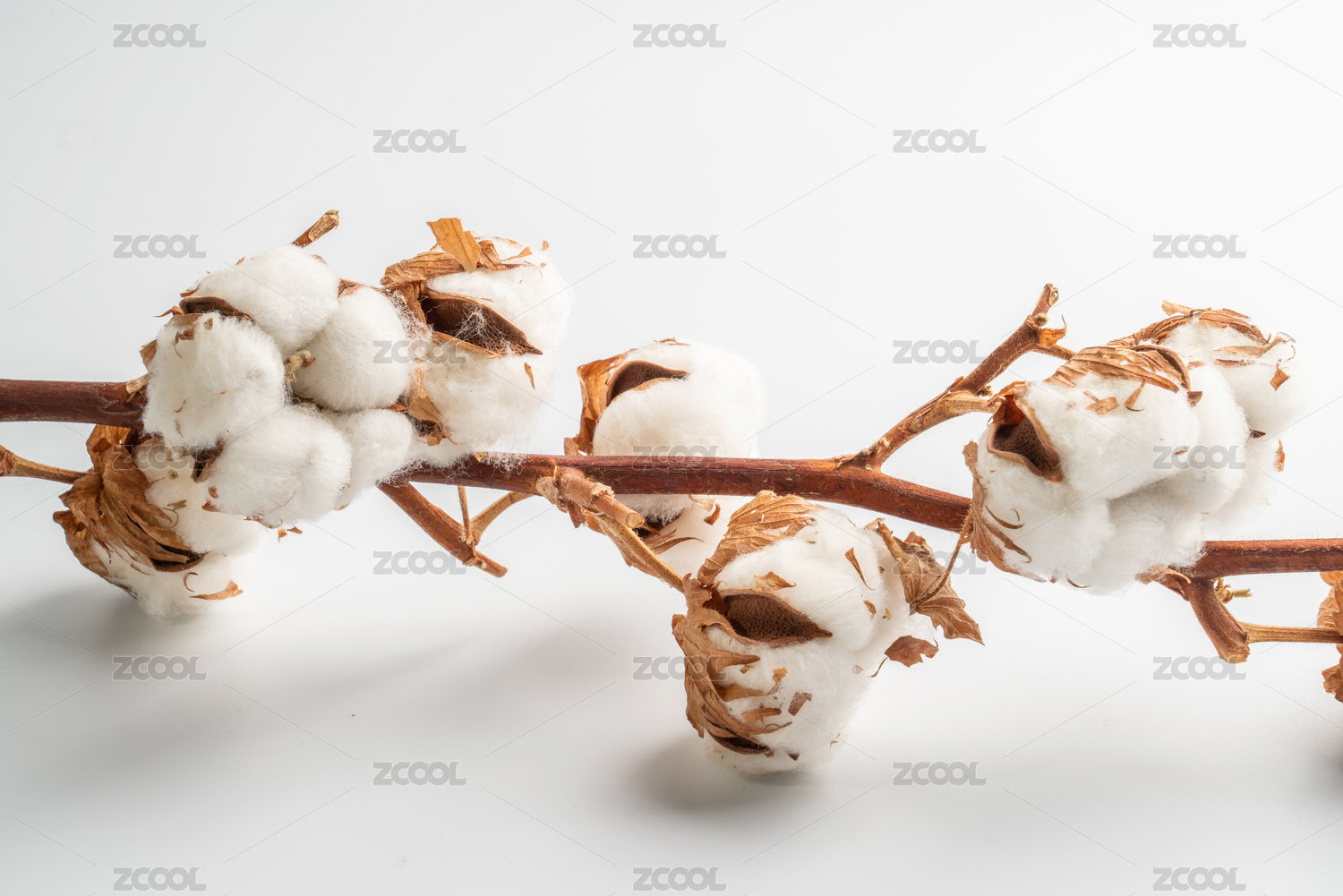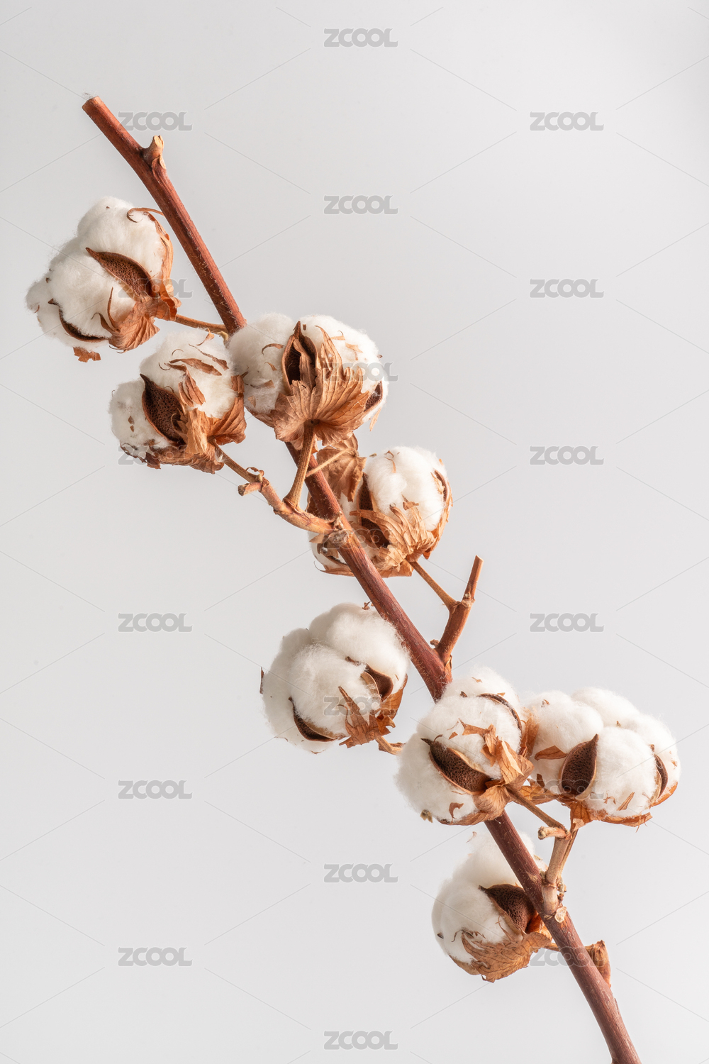 晒干的天然棉花球枝条